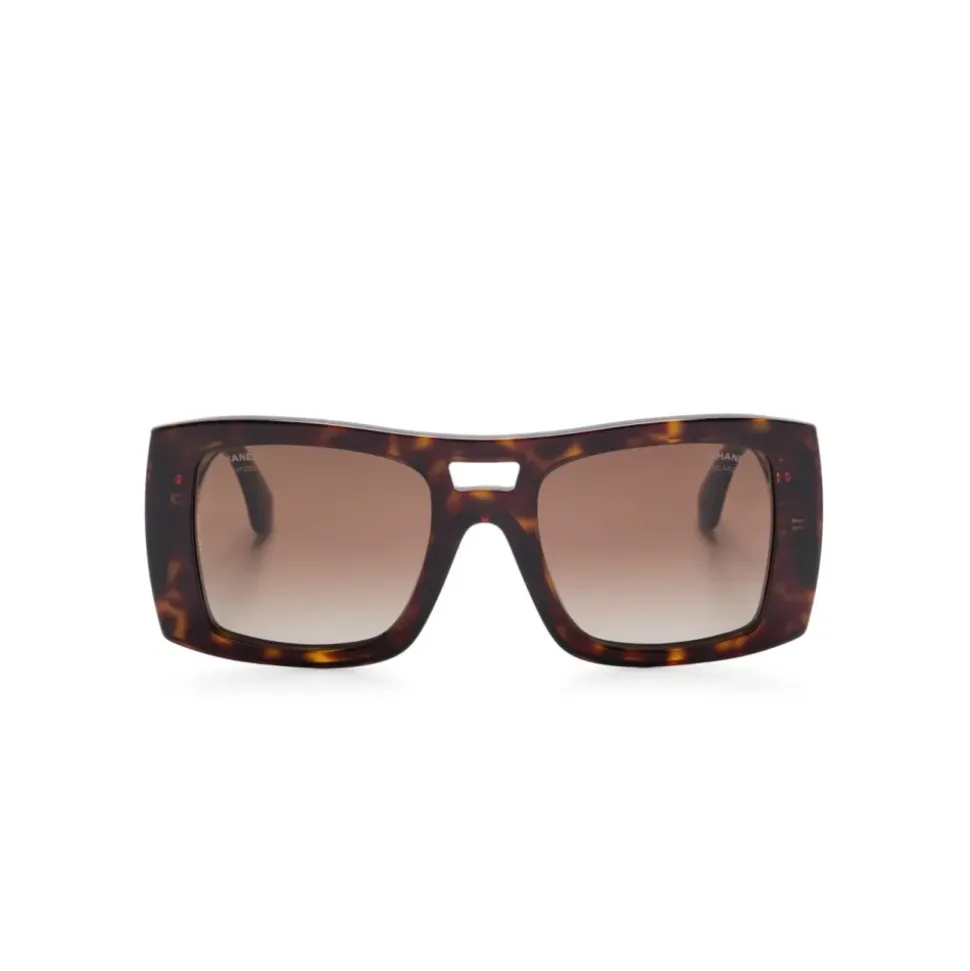 Chanel firkantede solbriller kombinerer en markant acetatramme med gradient, polariserede glas for et raffineret hverdagslook. Designet balancerer en chunky silhuet med signaturbranding for alsidig styling. Nøgleattributter: Mørk Havana | Gradient brun | Acetat | Polariserede glas | UV-beskyttelse | Gradientglas | Originalt etui inkluderet | Renseklud inkluderet | Certifikat for ægthed og garanti inkluderet | Firkantet ramme | Chunky acetatramme | Tonede gradientglas | CC-logo på stængerne | Dimensioner og pasform: Glasbredde: 53 mm | Brobredde: 21 mm | Stanglængde: 140 mm | Sammensætning og pleje: Acetat | Aftørres med en ren, tør klud.