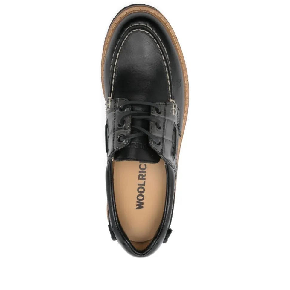 Woolrich flade sko er snøresko designet til hverdagsbrug, defineret af en riflet gummisål og et præget logo for en diskret signaturdetalje. Nøgleattributter: Sort | Grå | Snørelukning | Riflet gummisål | Præget logo | Dimensioner og pasform: fit_information | measurements