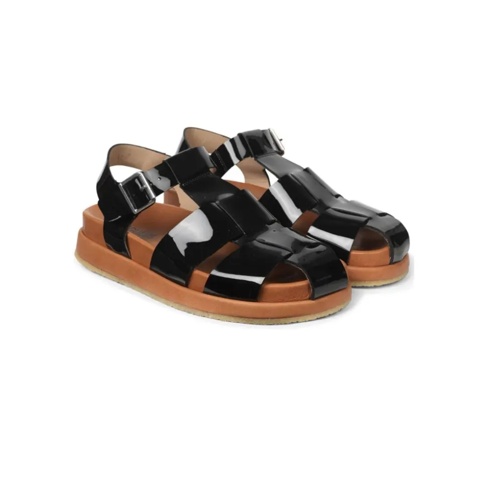 Forkæl dig selv med disse klassiske sorte spænde sandaler fra Angulus. Lavet med læderoverdel og gummisål, disse flade sandaler er et must-have for den modebevidste kvinde.