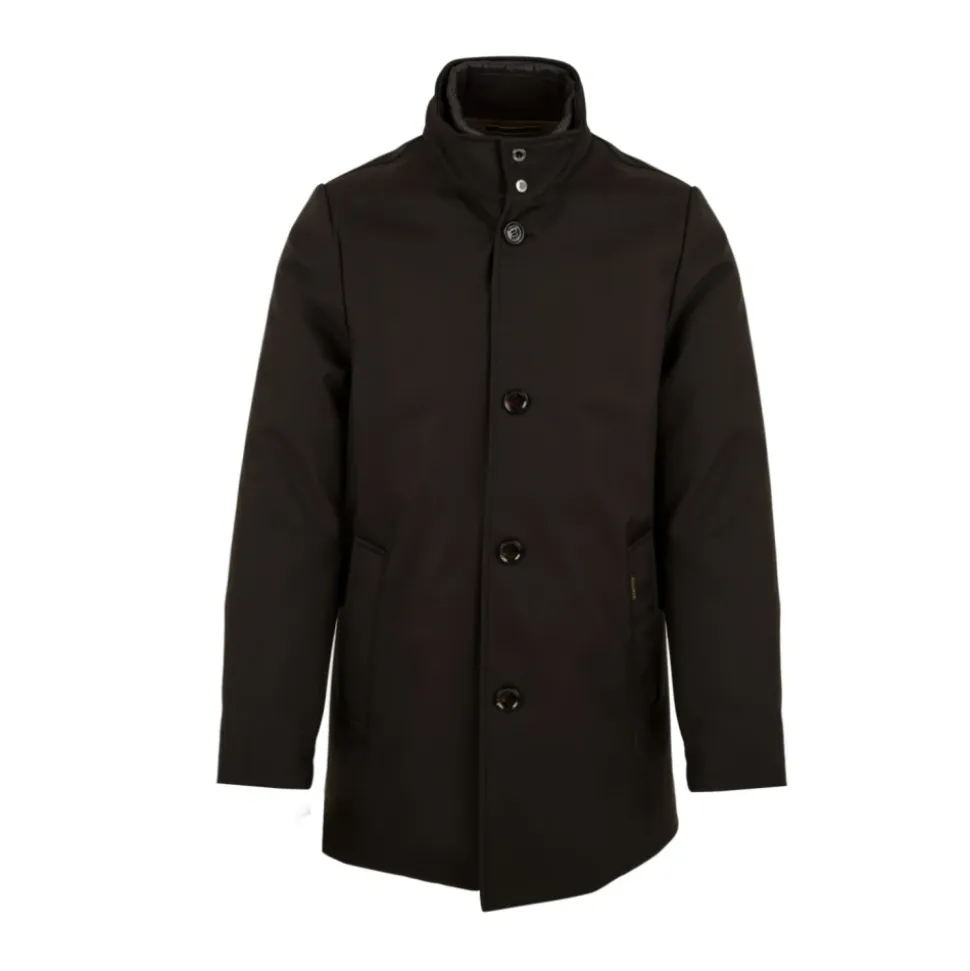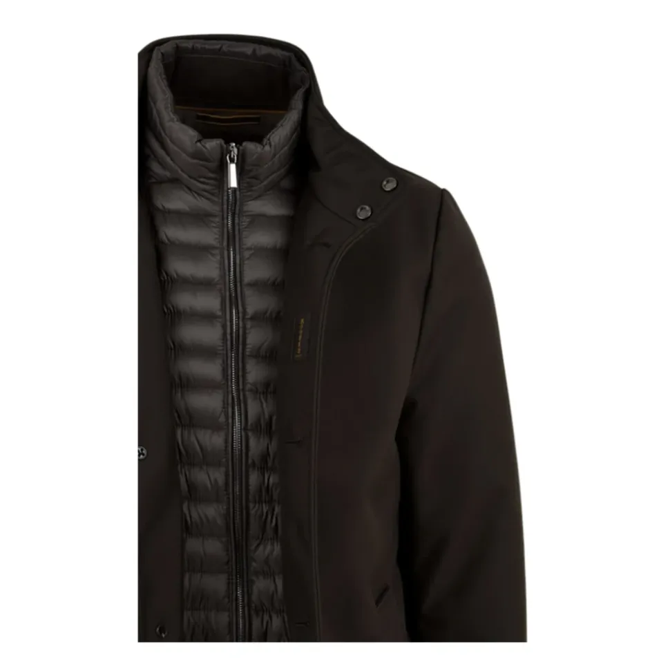 Præsenterer Moorer Single-Breasted Coat til mænd. Denne stilfulde frakke har en lynlås og knaplukning foran, en aftagelig hætte, sidelommer og indvendige lommer til din bekvemmelighed. Den har også trykknapper på kraven for ekstra stil. Opgrader din garderobe med denne alsidige og fashionable frakke.