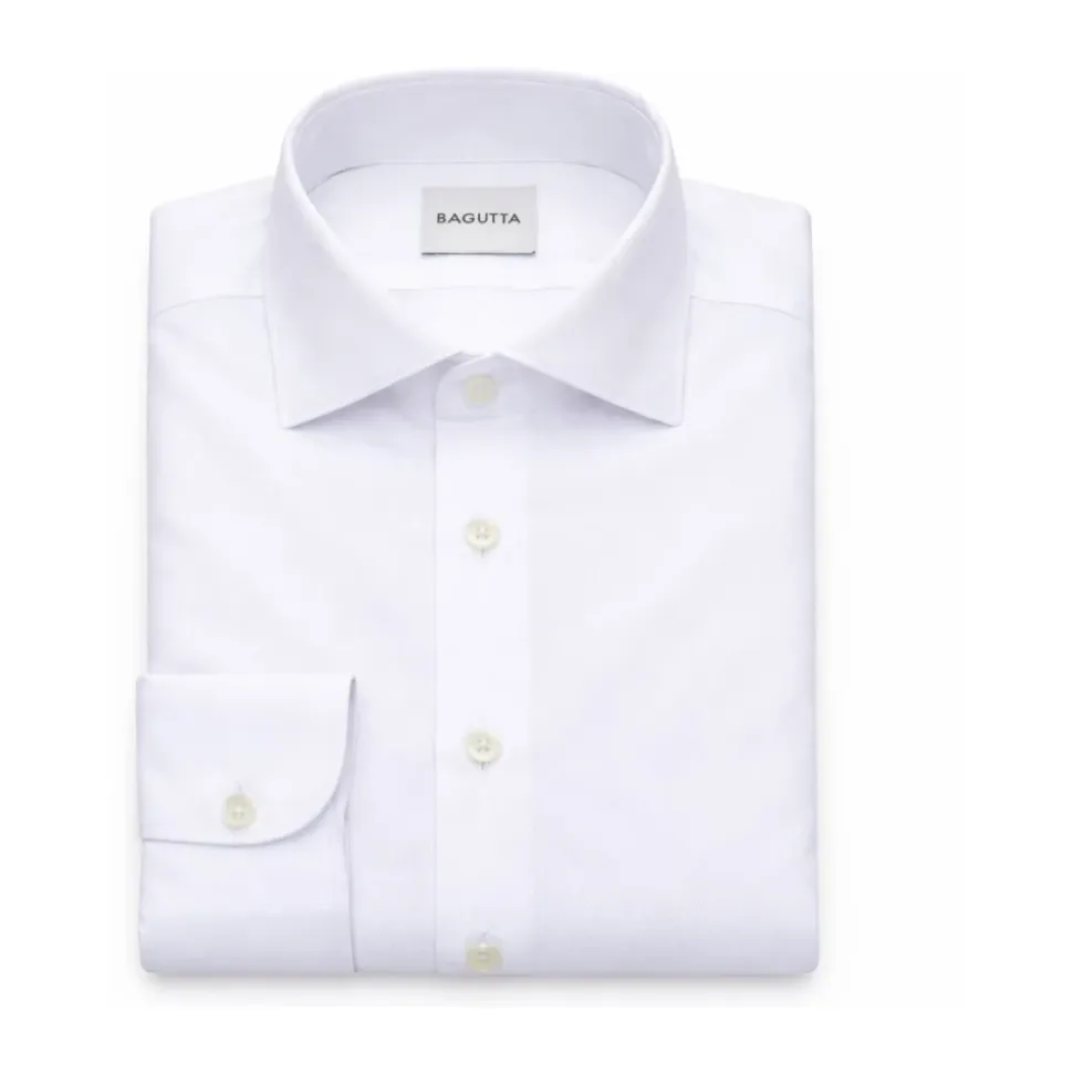 Bagutta slim-fit skjorte i hvid bomuld har en fransk krave og perlemorsknapper for et raffineret formelt look. Lange ærmer og en skræddersyet silhuet gør den velegnet til kontor og formelle lejligheder. Vigtigste egenskaber: White | Bianco | Bomuld | Fransk krave | Lange ærmer | Perlemorsknapper | Dimensioner og pasform: Slim fit | Sammensætning og pleje: 100% bomuld