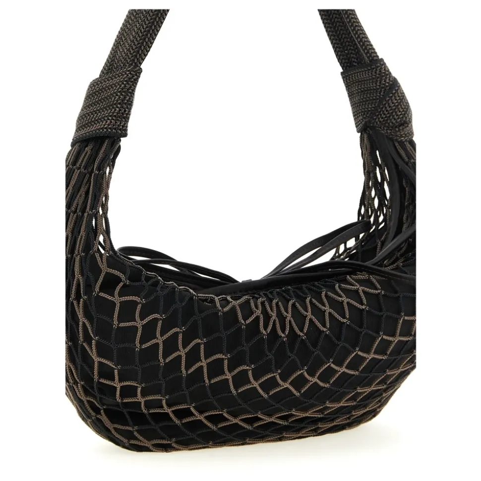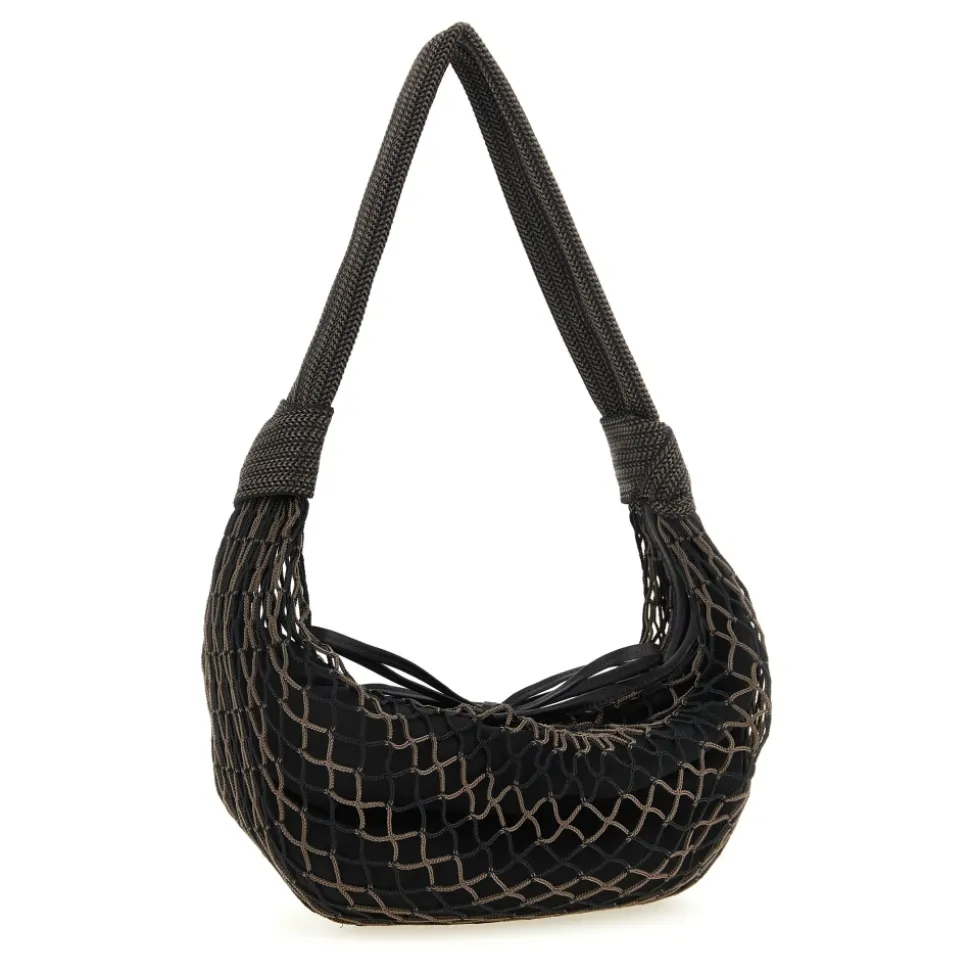 Lemaire Fortune Croissant Filt Taske kombinerer et ydre i nylonnet med en aftagelig nylonpung med lynlås for en alsidig 2-i-1 skulder- eller håndtaske. Samarbejdet med FILT blander netværkshåndværk og læderkant til hverdagsbrug i byen. Vigtige egenskaber: Brun | Polyester | Vandafvisende indvendig nylonpung | Let netkonstruktion | Aftagelig indvendig taske med lynlåslukning foroven | Læderbindelukning til ydre net | Indvendig lynlåslomme | Trykknapper sikrer indvendig pung | Vævet hank med knudedetaljer | Chevron-netmønster | Læderkant og bindelukning | 2-i-1 konvertibel silhuet | Mål og pasform: B 42 x H 22 x D 14 cm | Hanklængde 52 cm | Pilehøjde 35 cm | Bæres i hånden eller over skulderen | Konvertibelt 2-i-1 design: ydre net med aftagelig indvendig pung | Sammensætning og pleje: 100% Polyester (hovedstof) | 100% Lammeskind (kant) | 100% Polyamid/Nylon (foring) | Må ikke vaskes. Må ikke bleges. Må ikke tørretumbles. Må ikke stryges. Kun professionel læderrens.