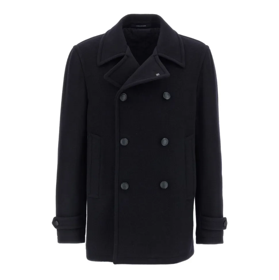 blå dobbeltradet lukning spejllæg slag aftagelig metal broche lommer med kant bagventil