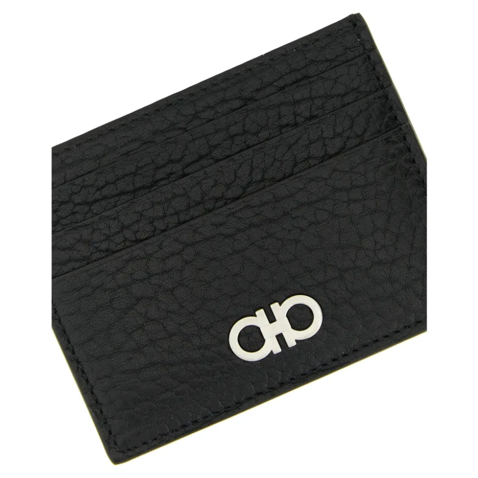 Ferragamo Gancini Kortholder kombinerer raffineret, behandlet kalveskind med husets signatur Gancini-hardware for en kompakt, hverdags kortholder. Dens dobbeltbehandlede læder tilføjer tekstur, samtidig med at den holder en slank profil til lommer og små tasker. Nøgleattributter: Sort | Kalveskind | Flere kortpladser | Central seddelrum | Gancini hardware detalje | Dobbeltbehandlet læder | Dimensioner & pasform: 11 x 9 cm | Sammensætning & pleje: Behandlet kalveskind