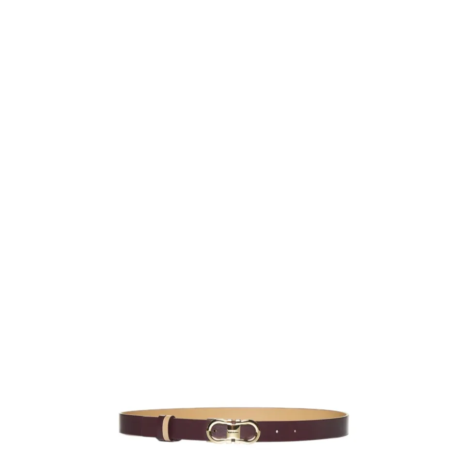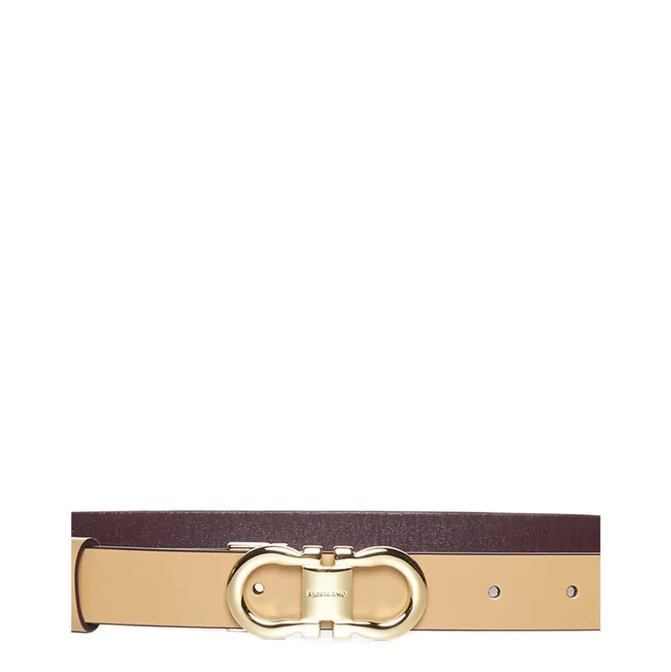 Ferragamo Gancini Reversibelt Bælte er et tofarvet kalveskindsbælte med det ikoniske Gancini-spænde, designet til alsidig styling og en personlig pasform. Vigtige egenskaber: Lys kamel | Mørk barolo | Kalveskindslæder | Reversibel konstruktion | Justerbar længde | Tofarvet design | Gancini-spænde i guldfinish | Mål og pasform: Justerbar længde | Sammensætning og pleje: Kalveskindslæder | Må ikke vaskes.