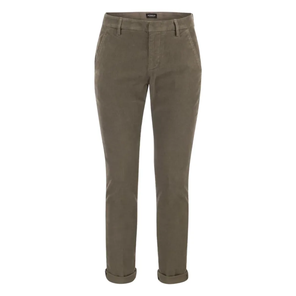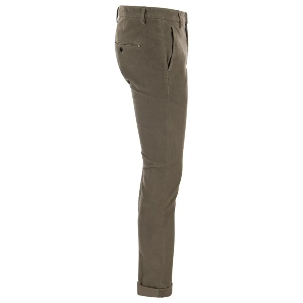Dondup Gaubert Trousers giver et raffineret fløjlsalternativ til smarte, afslappede garderober. Den slanke, skræddersyede silhuet tilføjer tekstur til hverdagsoutfits og bevarer samtidig et poleret look. Vigtige egenskaber: Grå | Turteldue | Fløjl | Sidelommer | Paspolerede baglommer | Bæltestropper | Knap- og lynlåslukning | Fløjlstekstur | Tilspidset ben | Indfarvet finish | Dondup logo detalje | Dimensioner & pasform: Slim fit | Skræddersyet pasform | Sammensætning & pleje: 98% bomuld | 2% elastan