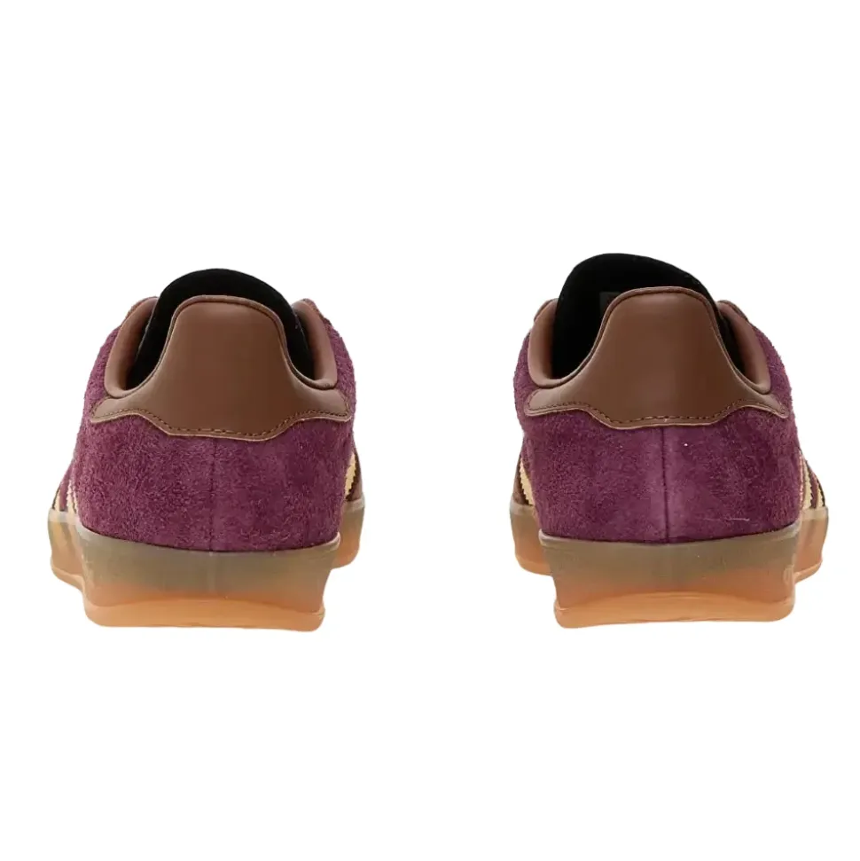Opgrader dit sneaker-spil med Adidas Gazelle Indoor Maroon Almost Yellow. Denne klassiske sko kombinerer traditionelt design med moderne accenter og har en overdel i høj kvalitet af burgundy ruskind med kontrasterende gule striber og brune detaljer. De ikoniske Adidas tre striber og gyldne Gazelle-logo fremhæver mærkets arv. Gummisålen giver fremragende greb og holdbarhed, perfekt til både banen og gaderne. Ideel for dem, der værdsætter en klassisk stil med et moderne twist, er Adidas Gazelle Indoor Maroon Almost Yellow et perfekt valg til hverdagens outfits.