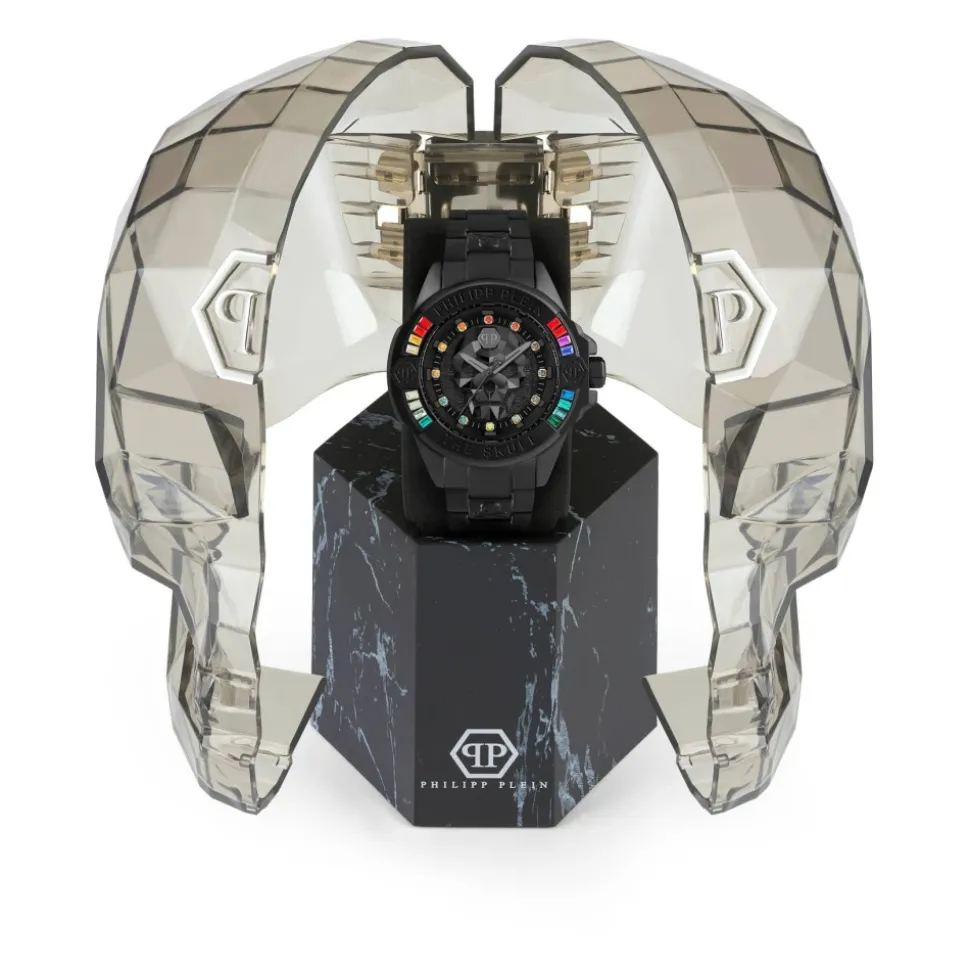 Oplev den dristige elegance i Genderless Skull Watch fra Philipp Plein, med et markant sort design med rhinestone-accenter. Produkt detaljer: Sort | Rustfrit stål | Vandtæt op til 5 ATM | Sort IP-kasse | Sort urskive | Rhinestone-besat rem |