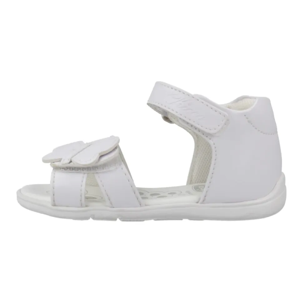 Chicco Genietta Sandal er en let og nem sandal, der er designet til hverdagsbrug. Den kombinerer en syntetisk overdel med en fleksibel gummisål og justerbare remme for nem på- og aftagning og sikker pasform. Vigtige egenskaber: Hvid | Syntetisk | Fleksibel ‘Flex-zone’ gummisål | Støttende indersål med logo (Natural Chicco) | Justerbare dobbelt velcroremme | Lukning med velcro (klæbende tape) | Rund tå | Sommerfugl-applikation (dekorativ) | Sammensætning og pleje: Overdel: Syntetisk | Foring og indersål: Tekstil, Syntetisk | Ydersål: Gummi