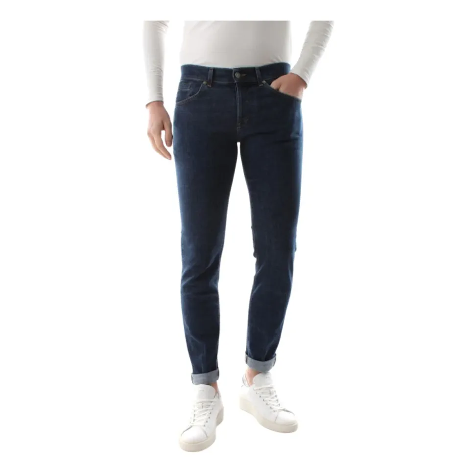 Dondup George Slim-fit Jeans opdaterer brandets ikoniske George model med en lav talje og en slank silhuet. Bukserne har en knaplukning og et metallogo bagpå for et distinkt denim-look. Vigtige egenskaber: Blå | Denim mørkeblå | Denim | Komfortabel denim af høj kvalitet | 5-lomme konstruktion | Knaplukning | Lav talje | Metallogo bagpå | Fremstillet i Italien | Dimensioner og pasform: Skinny fit – tætsiddende til anklen | Lav talje