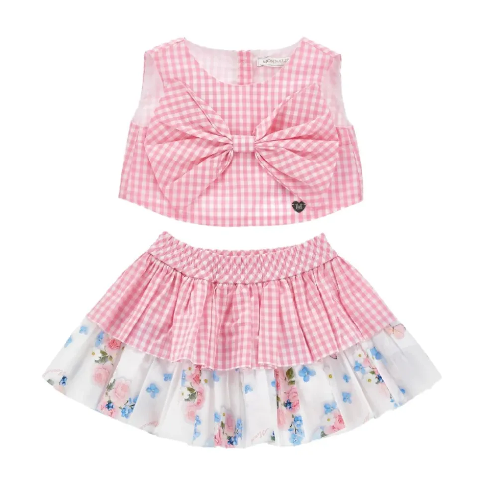 Monnalisa Gingham Bow Set kombinerer et klassisk gingham-mønster med blomsterprint og en sløjfedetalje for et koordineret look. Sættet er afsluttet med knaplukninger og en elastisk linning for nem påklædning. Vigtige egenskaber: Pink | Bomuld | Knaplukning | Elastisk linning | Gingham-mønster | Sløjfedetalje | Blomsterprint | Sammensætning & pleje: 100% bomuld