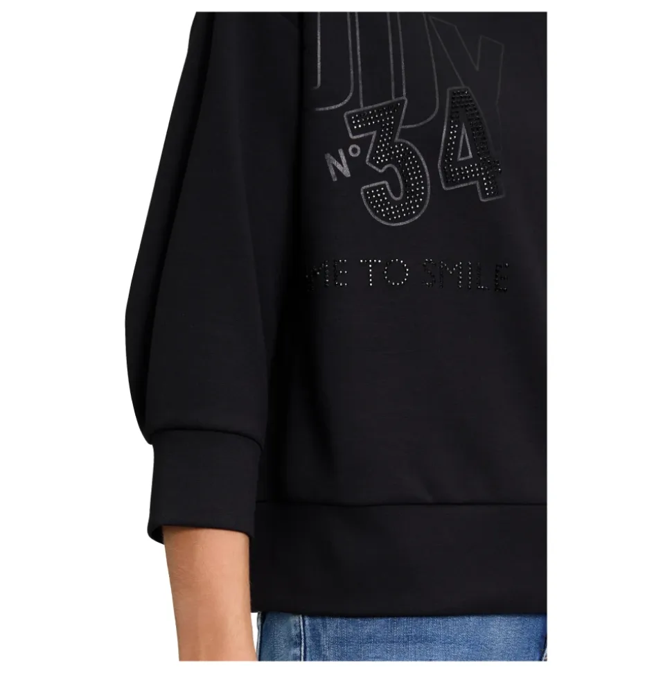 Ekstravagant og stilfuld – denne sweatshirt med glimmersten sætter en funklende erklæring og tilføjer et særligt touch til dit look. Den tætsiddende silhuet fremhæver elegant dine konturer, mens det moderne, ensfarvede design forbliver alsidigt til at blande og matche. Perfekt til dem, der elsker modeglans uden at gå på kompromis med komforten. En rigtig blikfang til afslappede looks med det ekstra touch!
