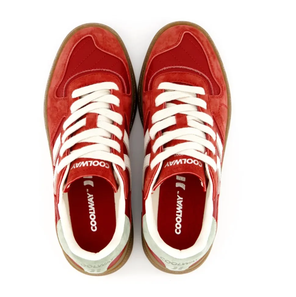 COOLWAY Goal er en ruskindssportssko, der kombinerer kontrasterende farvedetaljer med en fleksibel gummisål for pålideligt greb. Den er designet til sporty hverdagsbrug med komfortfokuseret polstring og forstærket konstruktion. Nøgleattributter: Rød | Ruskind | Fleksibel gummisål for holdbarhed og greb | Udskiftelige tofarvede flade bomuldssnørebånd | Formsyet pløs med polstring | Let polstret krave | Syforstærket front/tå | Kontrasterende farvedetaljer | Figurmønstret polstring på pløsen | Sammensætning & pleje: Ruskind | Gummi