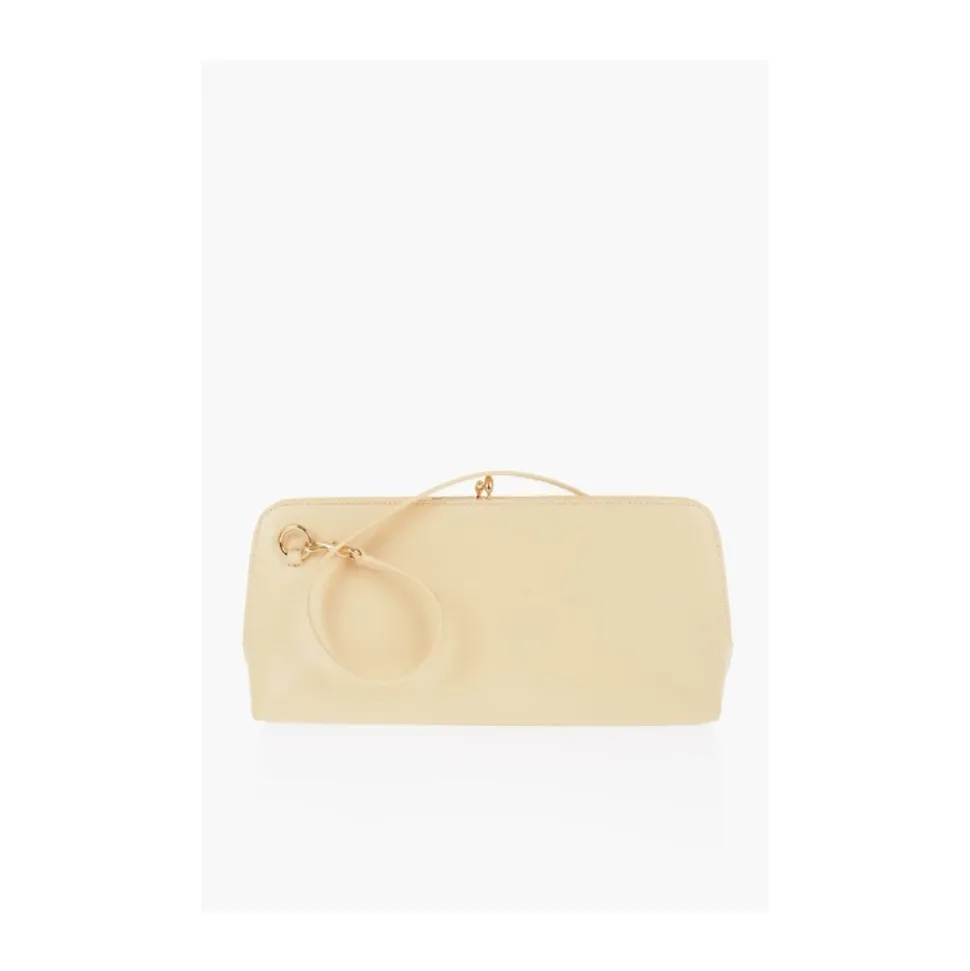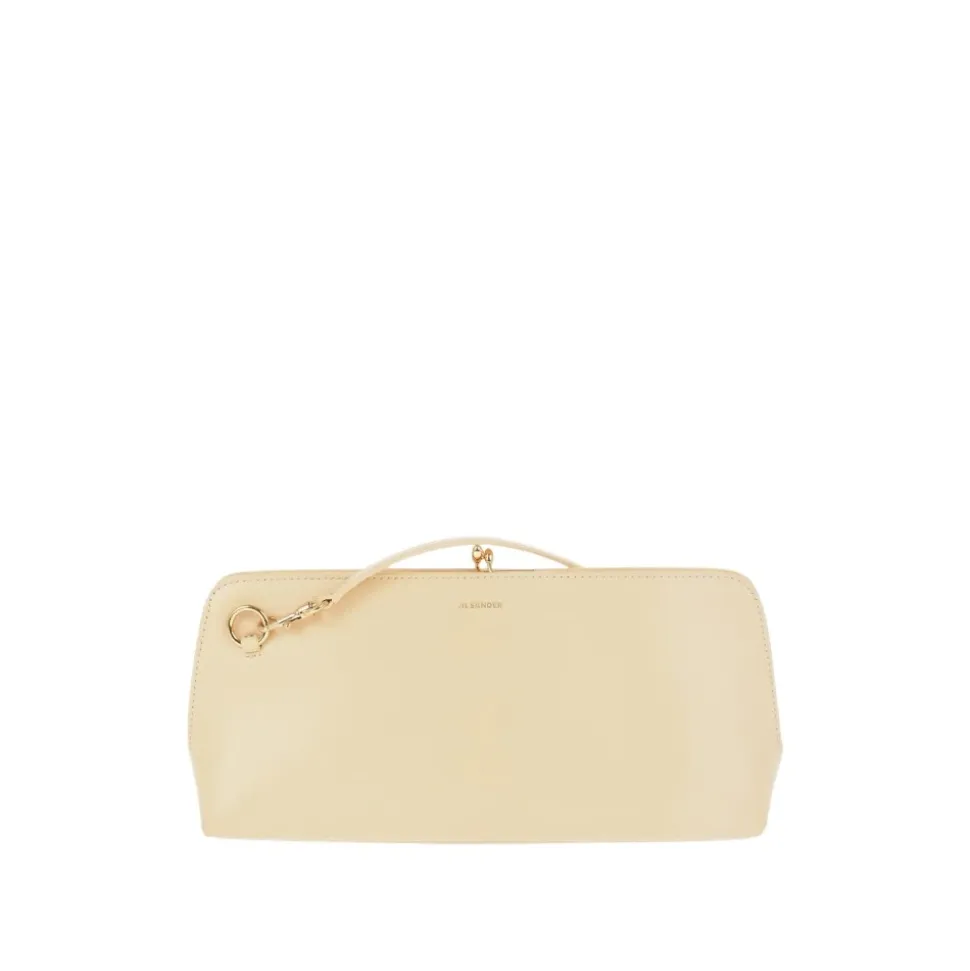 Forkæl dig selv med Jil Sander Goji Shoulder Bag. Denne champagnefarvede clutch er perfekt til den moderne kvinde. Lavet af luksuriøst kalveskind og nappalæder, er den alsidig til både håndholdt og skulderbrug. Mål: 40cm x 20cm.