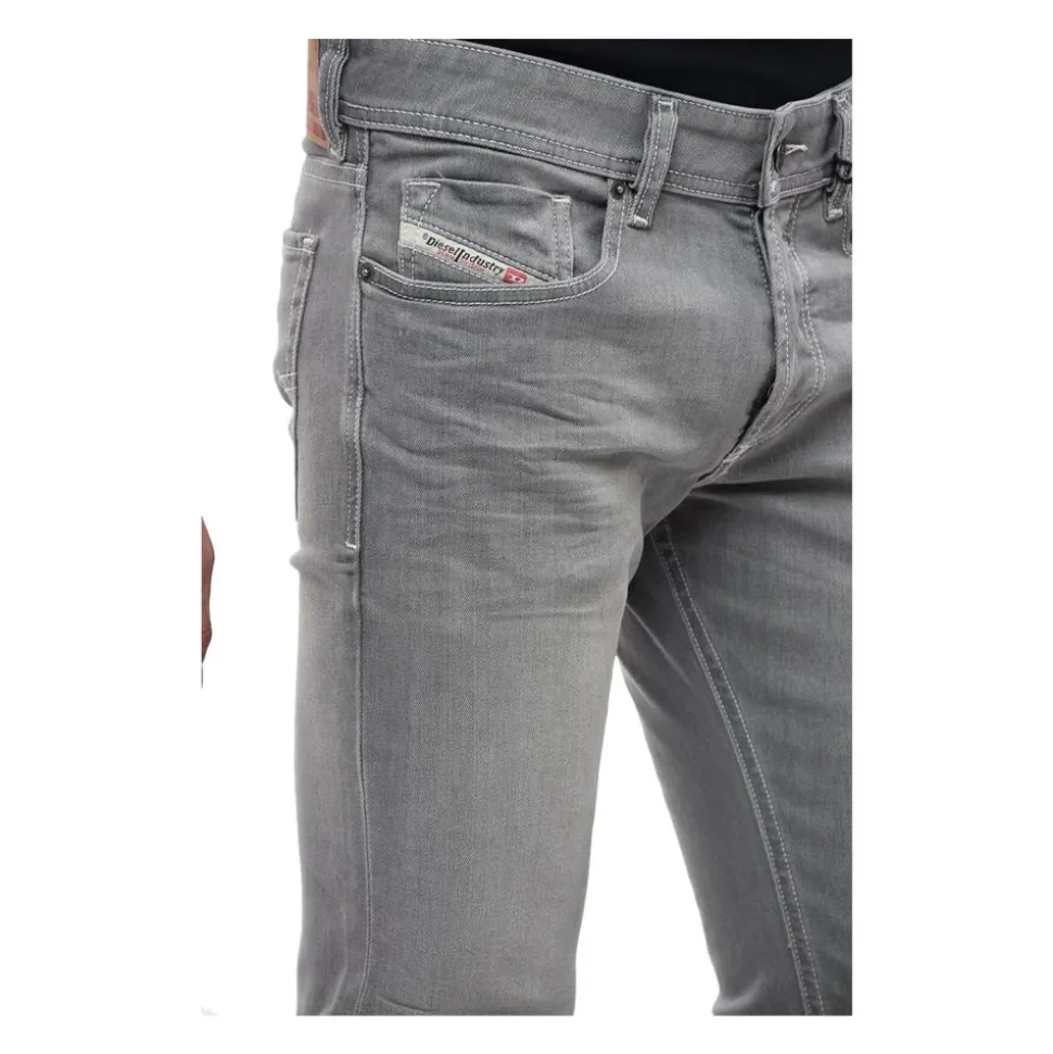 Løft din stil med Diesels grå skinny jeans, fremstillet af let elastisk grå denim for en slank og komfortabel pasform. Disse jeans har knaplukning, fem lommer og et karakteristisk kontrastmærke bagpå, hvilket gør dem til en alsidig tilføjelse til enhver garderobe. Produkt detaljer: Grå | Denim | Knaplukning | Fem lommer | Kontrastmærke bagpå | Dimensioner og pasform: Slim-fit | Sammensætning og pleje: 97% bomuld | 3% elastan | Maskinvask kold, tørretumbles ved lav varme.