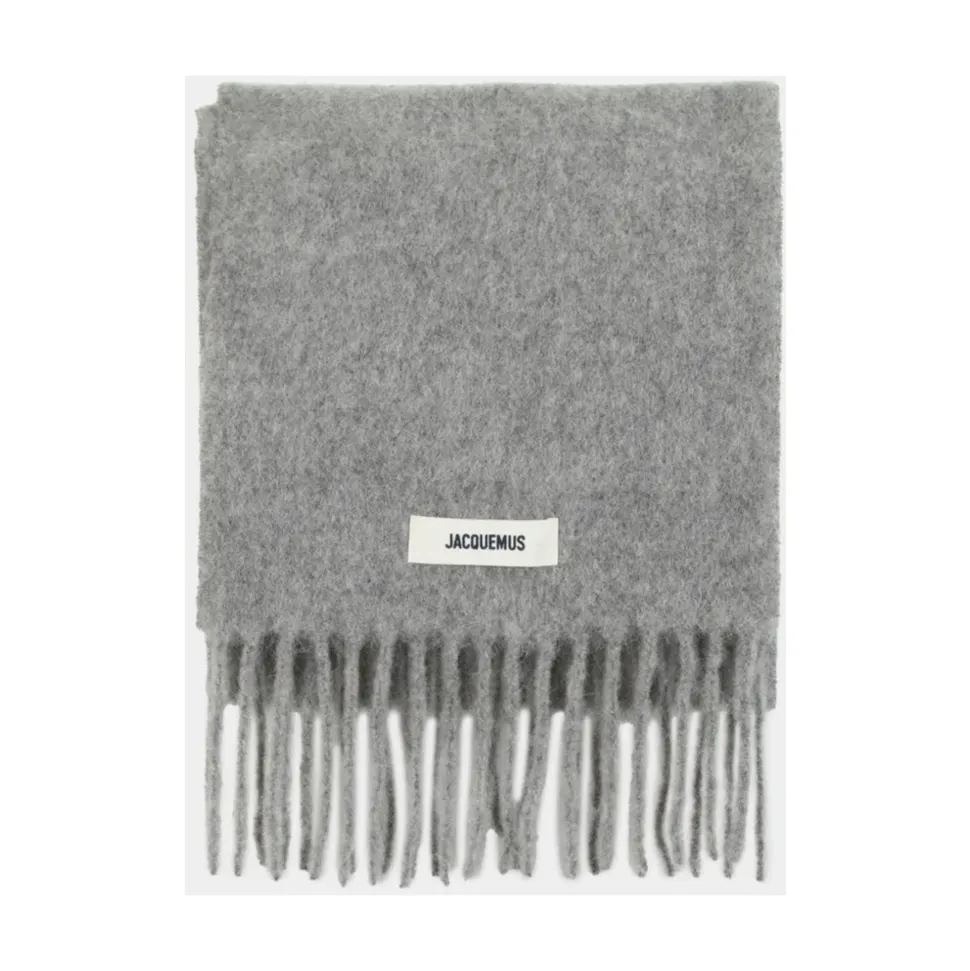 Opgrader din vintergarderobe med dette elegante grå uldtørklæde fra Jacquemus, designet til at holde dig varm og stilfuld med sin luksuriøse uldsammensætning i to nuancer af grå. Produkt detaljer: Grå | Uld |