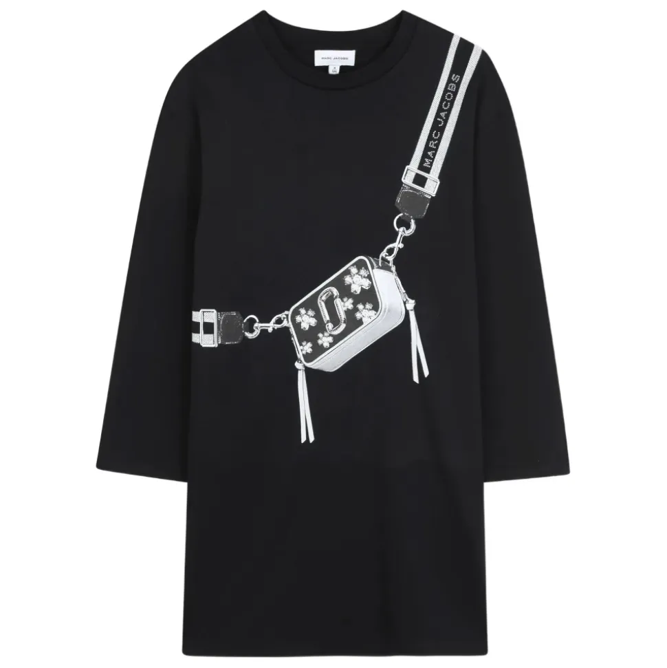 Forkæl din lille pige med denne Marc Jacobs kjole med et grafisk tasketryk. Lavet af 100% bomuld, har denne kjole lange ærmer, en rund hals og er produceret i Tunesien.