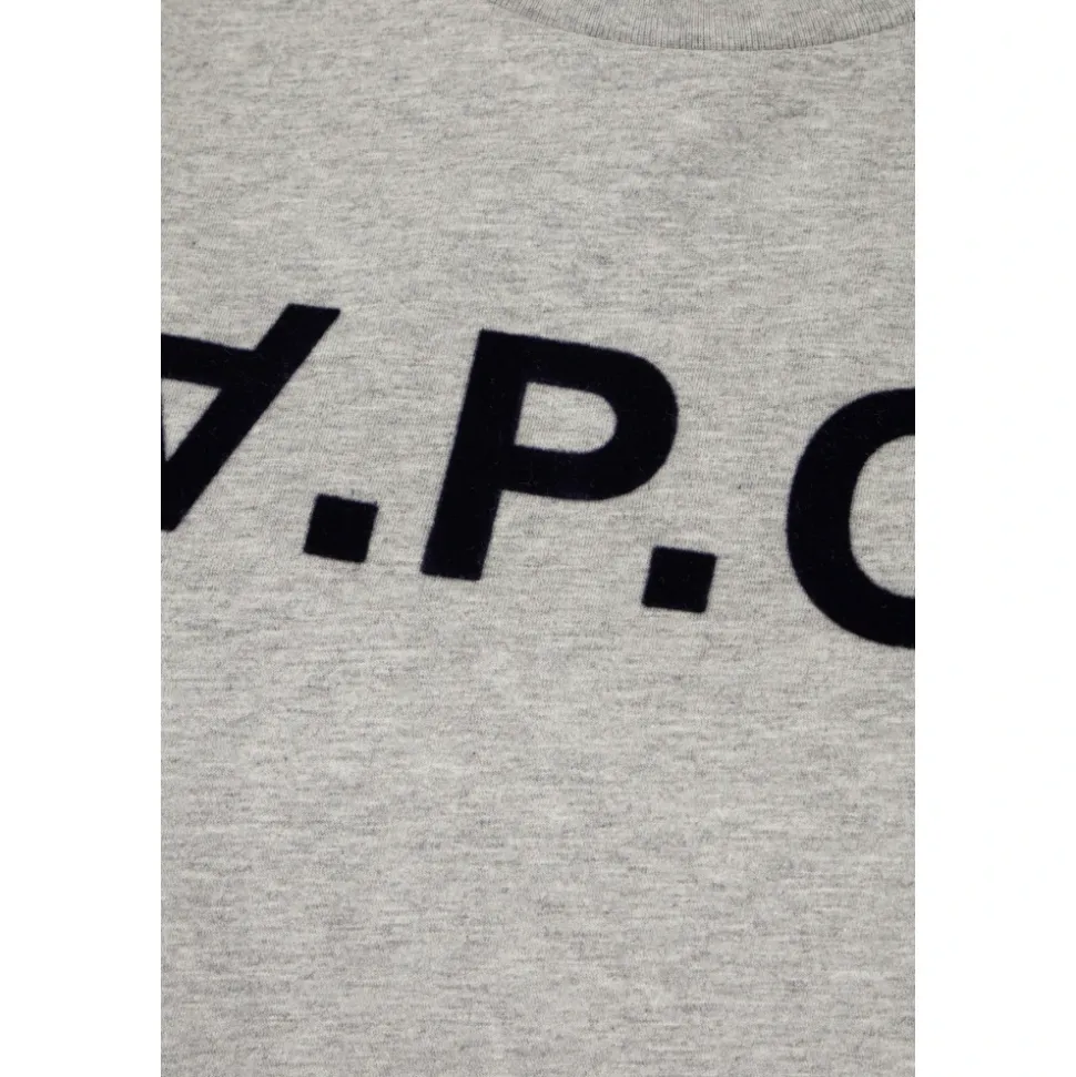Opgrader din afslappede garderobe med A.P.C. Grand VPC T-shirten, et alsidigt stykke tøj fremstillet af 100% bomuld for ultimativ komfort. Produkt detaljer: Heather Grey | Dark Navy Blue | Bomuld | Crew neck | Straight cut | Logo printed | Dimensioner og pasform: Standard fit | Sammensætning og pleje: 100% Bomuld | Maskinvask kold, tørretumbles ved lav varme.
