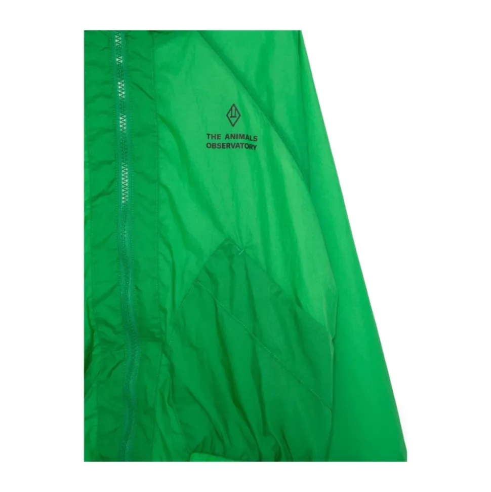 Hold dig stilfuld og tør i denne græsgrønne ripstop tekstur regnjakke fra The Animals Observatory. Med front lynlås lukning, klassisk hætte, lange raglanærmer, elastiske manchetter, logo print på brystet, to forlommer, logo print på bagsiden, netfor, og elastisk kant. Perfekt til udendørs eventyr!