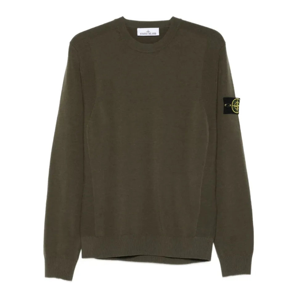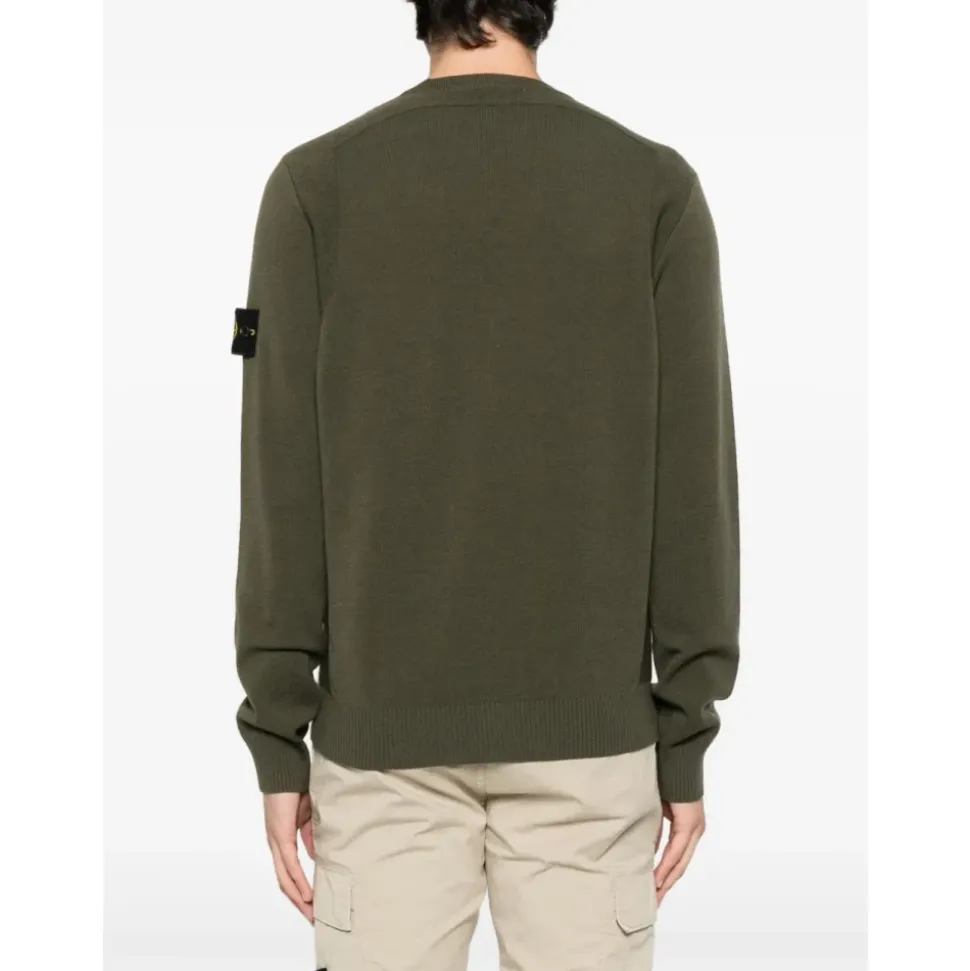 Stone Island herre rund-hals strik i grøn med lange ærmer, ribstrikkede manchetter og ribstrikket kant.