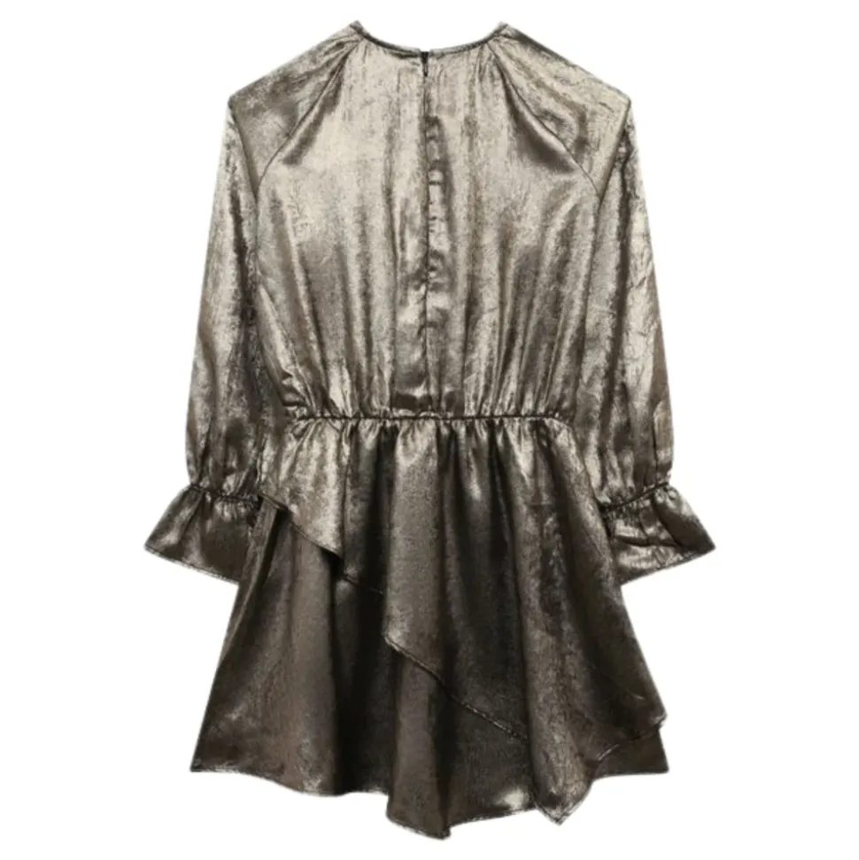 Opgrader din garderobe med Zadig & Voltaire Gylden Metallic Kjole, der har en fantastisk metallisk effekt og elegante flæsedetaljer. Perfekt til enhver speciel lejlighed, denne kjole kombinerer stil og komfort ubesværet. Produkt detaljer: Guld | Gul | Polyester | Rund hals | Lange raglanærmer | Udsvingede manchetter | Rynket detalje | Elastisk talje | Lagdelt design | Asymmetrisk kant | Sammensætning og pleje: 100% Polyester