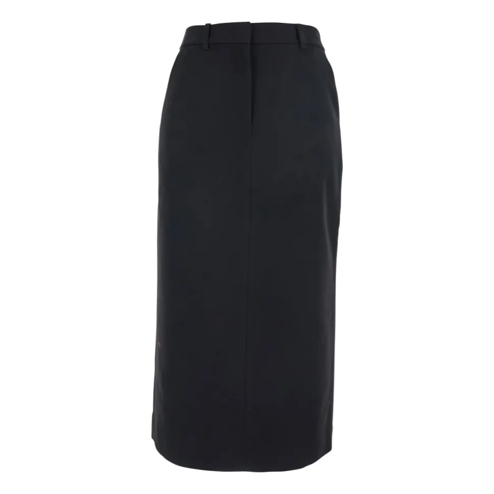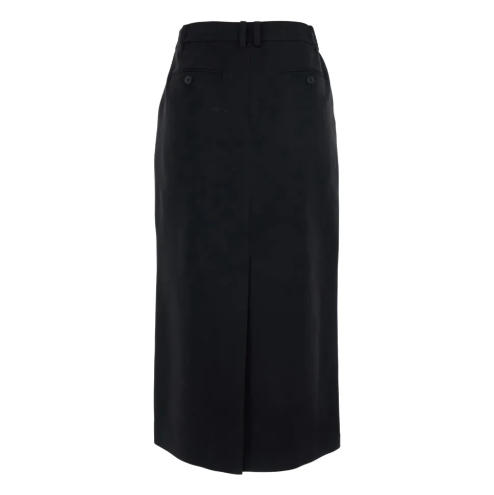 Dunst H-Line Lang Nederdel kombinerer en minimalistisk H-linje silhuet med et blødt uldblandingsstof for et rent, alsidigt look, der er velegnet til både hverdagsbrug og mere formelle lejligheder. Nøgleattributter: Sort | Uldblanding | Bæltestropper | Skjult lukning foran (lynlås) | To paspolerede baglommer med knap | Enkelt slids bagpå | H-linje silhuet | Lige kant | Dt logo broderi på baglomme | Hornknap med graveret logo | Minimalistisk design | Dimensioner & pasform: Regular fit | Lang længde