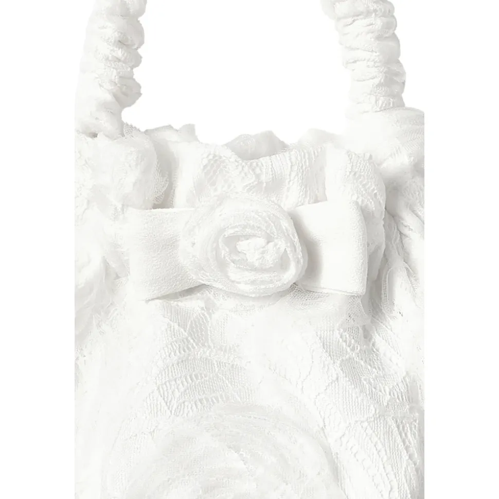 HÅNDTASKE fra Self-Portrait Kids er et udsøgt forslag til de yngste elskere af subtil elegance. Den harmoniske, afrundede form og bløde linjer understreger dette accessories unikke karakter, hvis korte, rynkede håndtag er udført med største omhu. Taskens overflade fanger med sin tredimensionelle, blonderede tekstur inspireret af botaniske motiver – spiral mønstrene vækker finesse af kunstneriske applikationer. Designets midtpunkt er en mesterligt udført stofsløjfe med en håndlavet blomst, der giver stykket en tydelig, piget charme. Den delikate foring og materialer af høj kvalitet garanterer blødhed og bærekomfort, hvilket skaber et værk mellem verdenerne af mode og anvendt kunst. HVORFOR SKAL DU VÆLGE DETTE PRODUKT? * Enestående materialestruktur – subtil, tredimensionel blonder * Kunstfærdigt håndlavet blomst og sløjfe * Uovertruffen letthed og venlighed over for børnehænder * Unikt design fra Self-Portrait Kids * Perfekt valg til elegante lejligheder Højde: 12 cm Bredde: 18 cm Modelens mål Højde: 176 cm Buste: 85 cm Talje: 60 cm Hofte: 89 cm