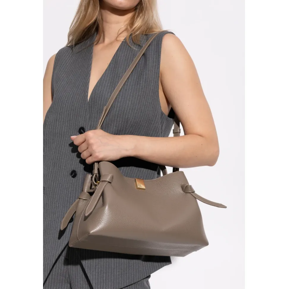 GYOZA HANDBAG af Yuzefi er definitionen på moderne elegance, baseret på en unik, Japan-inspireret silhuet. Dens BLØDT AFRUNDEDE FORM med en bred bund og delikate folder vækker mindelser om subtiliteten af en gyoza dumpling, samtidig med at den fanger med sine flydende linjer og uformelle sofistikation. Hele stykket er lavet af den højeste kvalitet KALVESKIND med en blid kornet tekstur, hvis glatte, ensartede overflade subtilt kontrasterer med dekorative knuder og PRÆCIS SYNING. Den raffinerede grå farve sikrer, at tasken passer perfekt til både minimalistiske og mere ekstravagante stilarter. Interiøret er foret med blød nylon og polyamid, hvilket giver holdbarhed og funktionalitet. HVORFOR SKAL DU KØBE DETTE PRODUKT? * Unik, Japan-inspireret silhuet * Håndværksmæssig kvalitet i kalveskind * Ornamentale detaljer, der tilføjer enestående karakter * Universal og raffineret grå farve * Praktisk og elegant interiør Højde: 23 cm Bredde på det bredeste punkt: 32 cm Bundbredde: 11 cm Modellens mål: Højde: 176 cm Buste: 85 cm Talje: 60 cm Hofter: 89 cm