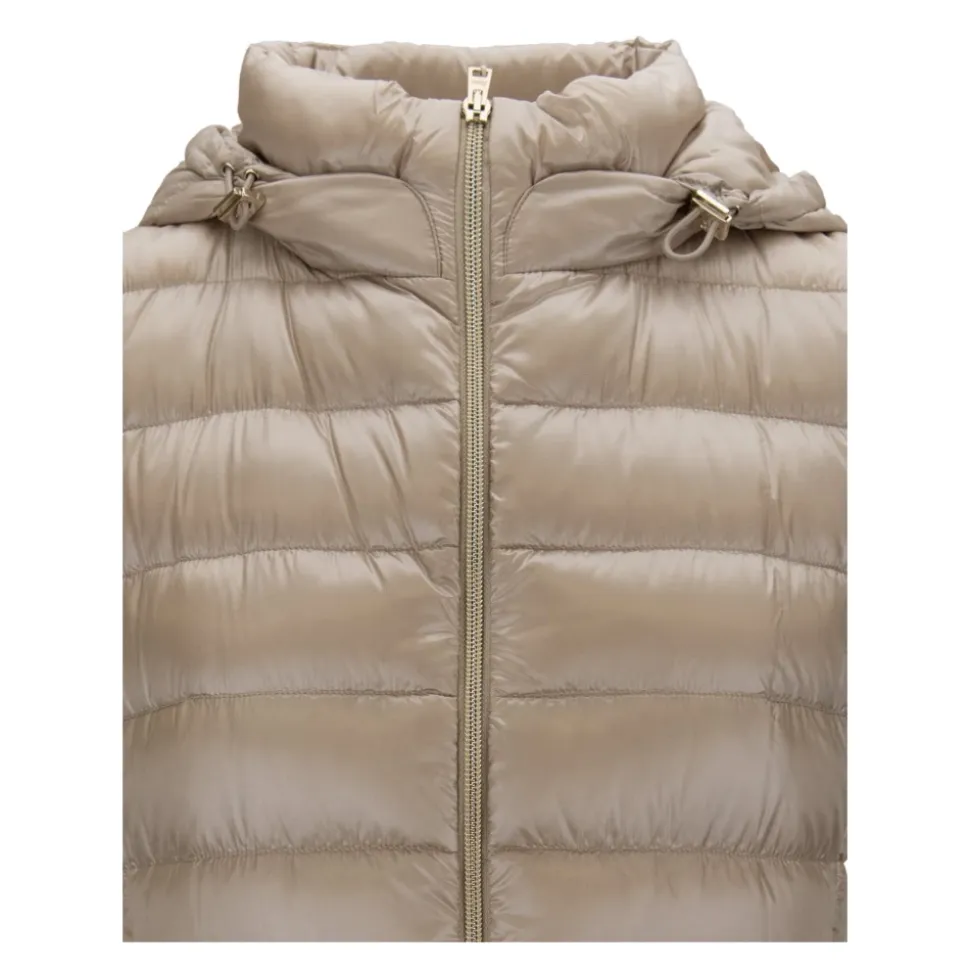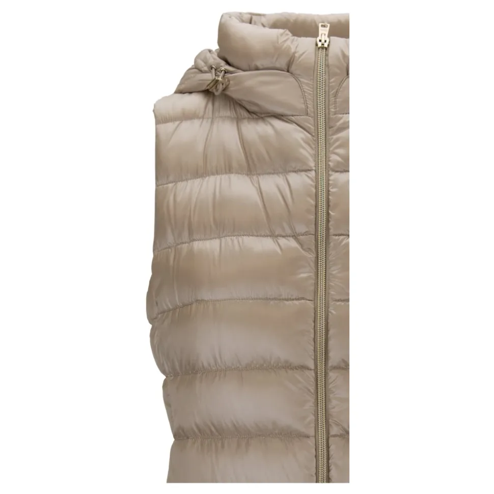 Hold dig varm og stilfuld med denne hætteforede dunvest fra Herno, der har en høj krave og aftagelig hætte for alsidig brug. Perfekt til lag-på-lag, denne vest kombinerer funktionalitet med et elegant design. Produkt detaljer: Beige | 100% Polyamid | Aftagelig hætte | Justerbar elastik i siden | Høj krave | Ærmeløst design | Sidelommer | Dobbelt lynlåslukning | Sammensætning og pleje: 100% Polyamid | 90% Dun | 10% Fjer