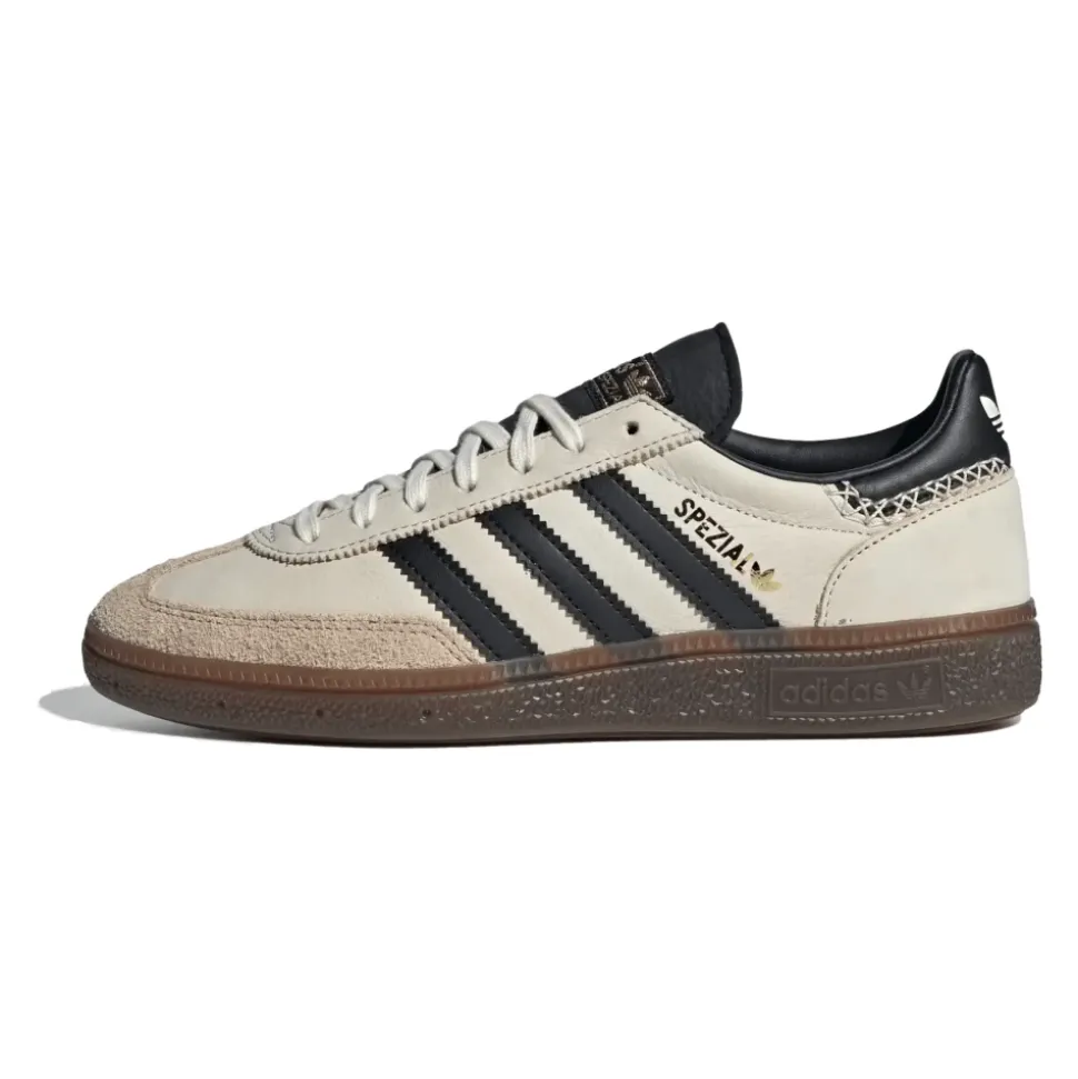 Adidas Handball Spezial er en unik sports sko designet til håndboldspillere, men er blevet en succes blandt hverdagsbrugere. Den har en stilfuld overdel i ruskind, en enkel letvægtskonstruktion og en gummisål for enestående greb. Den lave profil giver stor komfort og kombinerer tradition med modernitet. Fremstillet af materialer af høj kvalitet sikrer disse sko holdbarhed og komfort. Farveskemaet Wonder White Black kombinerer retro sportsarv med bystil, hvilket gør dem både praktiske og fashionable. De marineblå sneakers er alsidige til afslappede, formelle og sporty outfits og tilføjer autenticitet og karakter til ethvert look. Vælg dette originale sporty look til dig selv!
