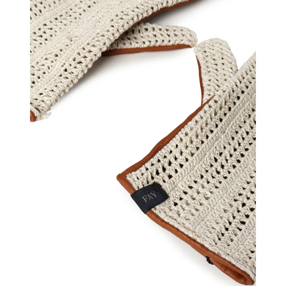 Fay Handsker kombinerer blødt nappalæder og mesh med hæklede detaljer for et raffineret, moderne tilbehør. Nøgleattributter: Beige | Naturfarvet creme | Nappalæder | Hæklet strik | Meshpaneler | Logo bogstaver | Sammensætning & pleje: Nappalæder | Mesh