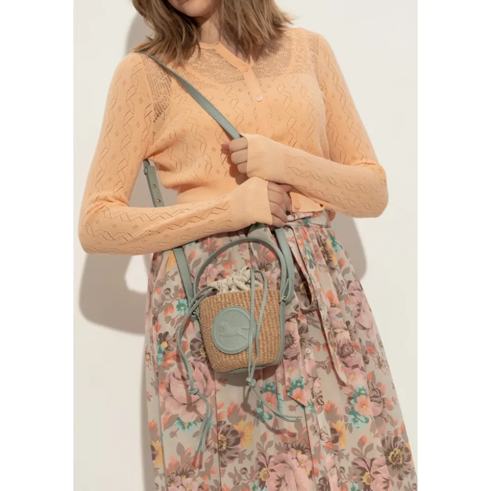 DEN “HORSE MEDAL MINI” BUCKET SKULDER TASKE udtrykker essensen af subtil elegance og moderne sensualitet, udtrykt gennem dens sofistikerede cylindriske form med en blidt afrundet bund. Den ædle ydre del, lavet af naturligt papir med en fint vævet tekstur, harmonerer perfekt med pistaciefarvede detaljer i let kalveskind, der understreger dette accessories sommerlige og luksuriøse karakter. Taskens indre er foret med en behagelig blanding af bomuld og hør, der sikrer både holdbarhed og brugerkomfort. Opmærksomheden henledes på den imponerende, runde applikation med en præget Chloé-logo og et motiv af en galoperende hest, der subtilt fremhæver modehusets prestige. Den diskret placerede læderhank og den funktionelle rem gør tasken exceptionelt praktisk, mens den harmoniske kombination af materialer garanterer en unik stil til enhver lejlighed. HVORFOR SKAL DU KØBE DETTE PRODUKT? * Enestående håndværk og opmærksomhed på detaljer * Naturlige, ædle materialer med en sommerlig karakter * Original applikation med logo og hestemotiv * Chloés brandprestige og tidløs elegance * Praktisk kombineret med sofistikeret design Højde: 12,5 cm Bredde på det bredeste punkt: 14 cm Bundbredde: 14 cm Modellens mål: Højde: 176 cm Buste: 85 cm Talje: 60 cm Hofter: 89 cm