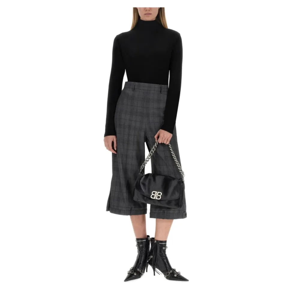 Balenciaga højtaljede ternede cropped bukser med brede ben kombinerer et tidløst ternet mønster med en moderne bredbenet, højtaljet pasform for et stilfuldt look fra dag til aften. Nøgleattributter: Grå | Grå | Ternet mønster | Høj talje | Cropped kant | Bredbenet silhuet | Skrædderdetaljer | Dimensioner & pasform: Højtaljet | Cropped længde | Bredbenet pasform | Skræddersyet pasform