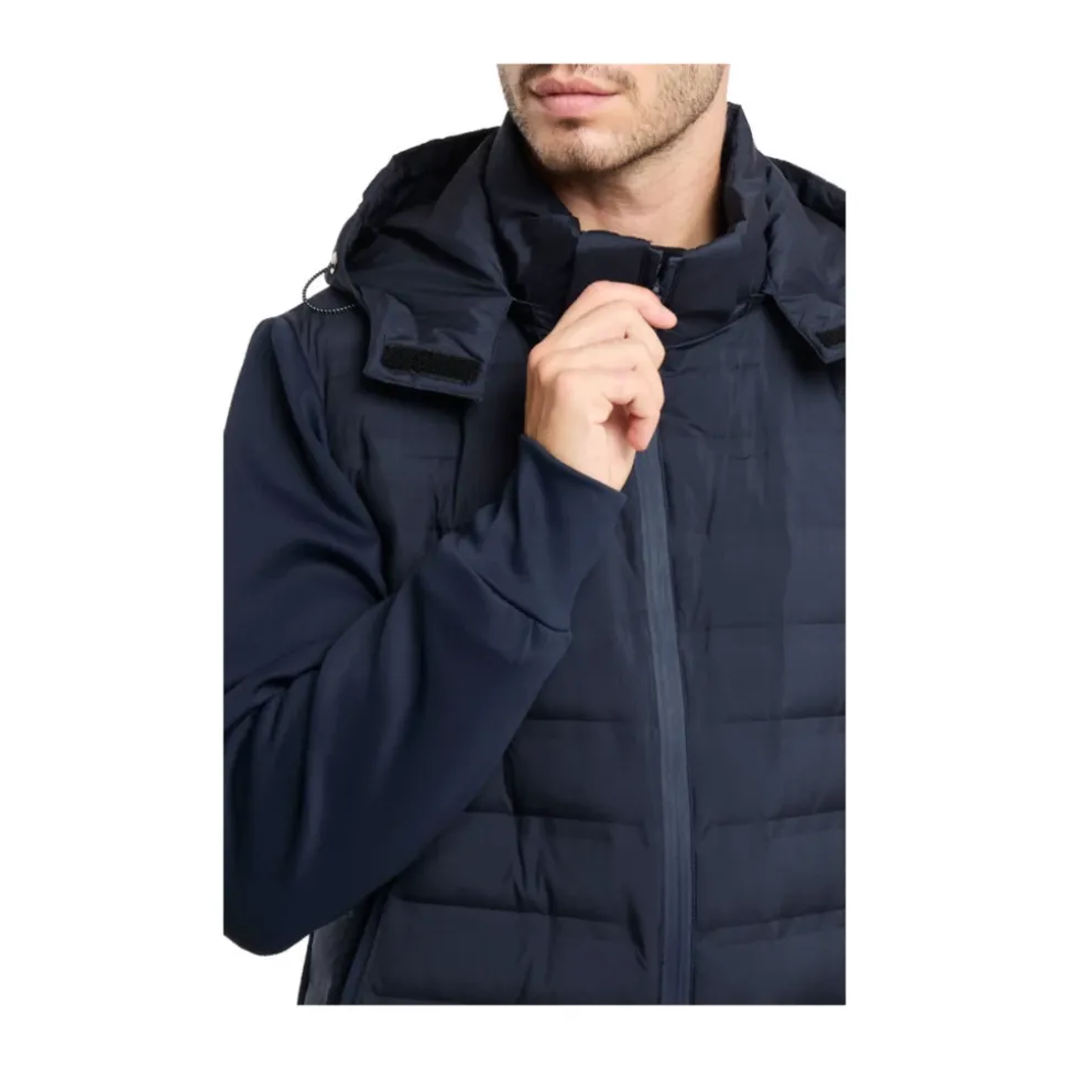 People Of Shibuya Hooded Quilted Jacket kombinerer en varmeforsejlet dundynejakke foran og hætte med strækbare tekniske ærmer og ryg for letvægtsvarme og ubegrænset bevægelsesfrihed. Designet til urbane aktiviteter, balancerer den isolering og mobilitet med vandafvisende, vindtæt beskyttelse. Nøgleattributter: Blå | Nylon | Vandafvisende | Vindtæt | Isoleret (dunfyldt) | Lynlåslukning | To forlommer | Hætte med snøre | Varmeforsejlet quiltet front og hætte | Blød mat finish | Ærmer og ryg i strækbart teknisk materiale | Hætte | Sammensætning & pleje: 90% dun, 10% fjer | Blød mat nylon | Strækbart teknisk materiale
