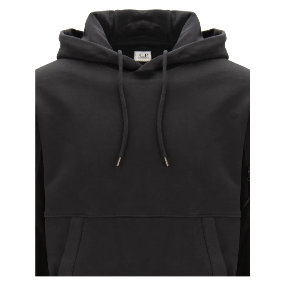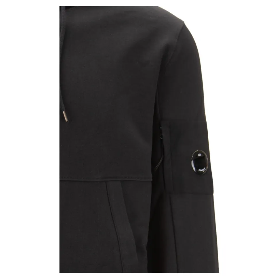 C.P. Company hættetrøje med brandets karakteristiske goggles på hætten og en lynlåslomme på ærmet til sikker opbevaring. Vigtige egenskaber: Sort | Nero | Bomuld | Justerbar hætte med snøre | Lynlåslomme på ærmet | Kængurulomme | Hætte med goggle linse | Kontrasterende brand-logo på hætten | Ribstrikkede manchetter og kant | Lange ærmer | Mål og pasform: Skulder (cm): 45 (XS), 46 (S), 47 (M) | Bryst (cm): 51 (XS), 53 (S), 55 (M) | Længde (cm): 63 (XS), 65 (S), 67 (M) | Ærme (cm): 79 (XS), 80 (S), 81 (M) | Sammensætning og pleje: 100% bomuld