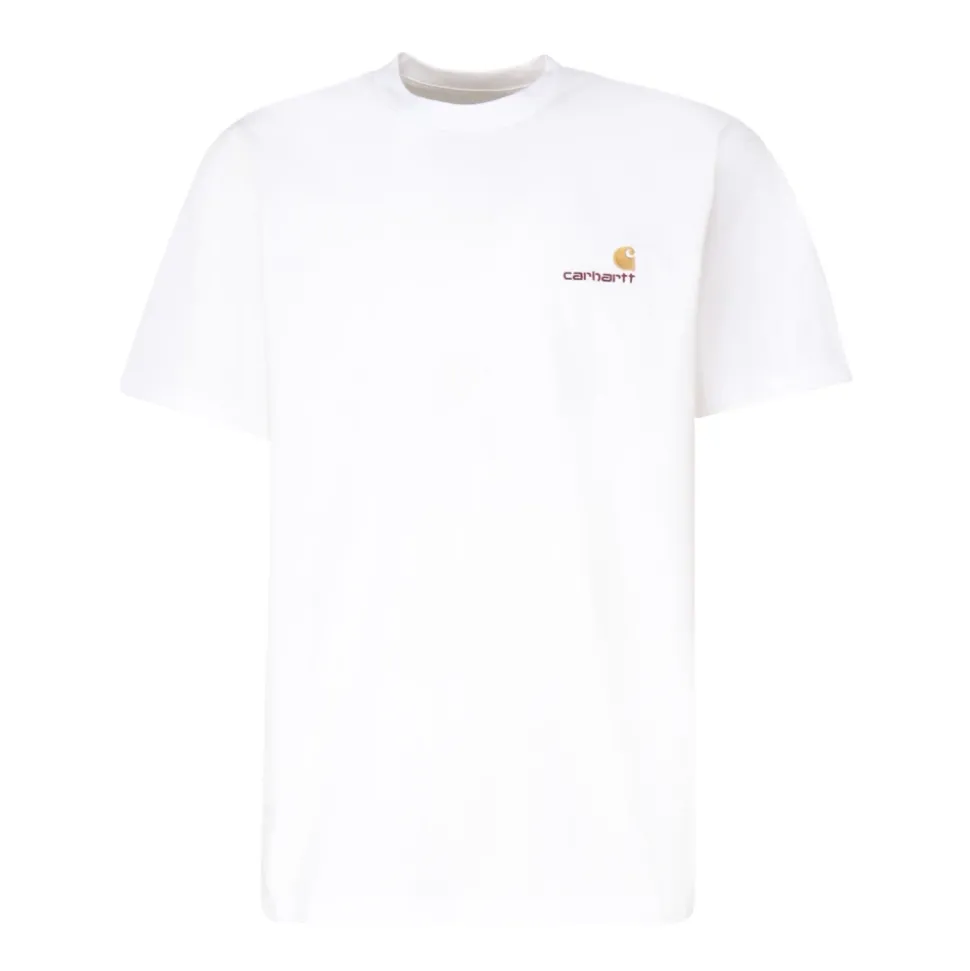 Oplev den perfekte blanding af komfort og stil med Carhartt Wip hvide bomulds T-shirt. Denne essentielle beklædningsgenstand har en klassisk rund hals og korte ærmer, hvilket gør den til en alsidig tilføjelse til enhver garderobe. Produkt detaljer: Hvid | 100% Bomuld | Rund hals | Korte ærmer | Dimensioner og pasform: Regular fit | Sammensætning og pleje: 100% Bomuld | Maskinvask kold, tørretumbles ved lav varme