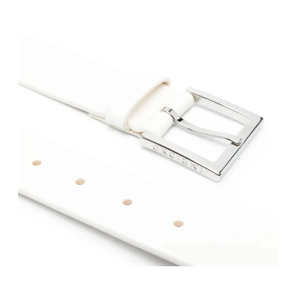 Forøg din stil med dette Orciani bælte til mænd med hvidt stiftespænde, perforerede huller til justerbar pasform og leveres med en beskyttende støvpose. Findes i forskellige størrelser baseret på taljeomkreds (cm).