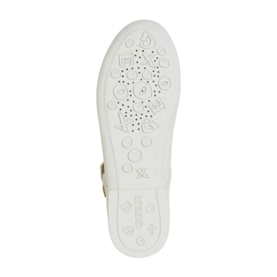 Geox Piger Hvide Ballerina Sko – Børnekollektion – Lavet med 100% Ko Læder Overdel, 80% Bomuld og 20% Mikrofiber Foring, og 100% Gummi Ydersål – Produktkode: J4555C 00044 C1000.