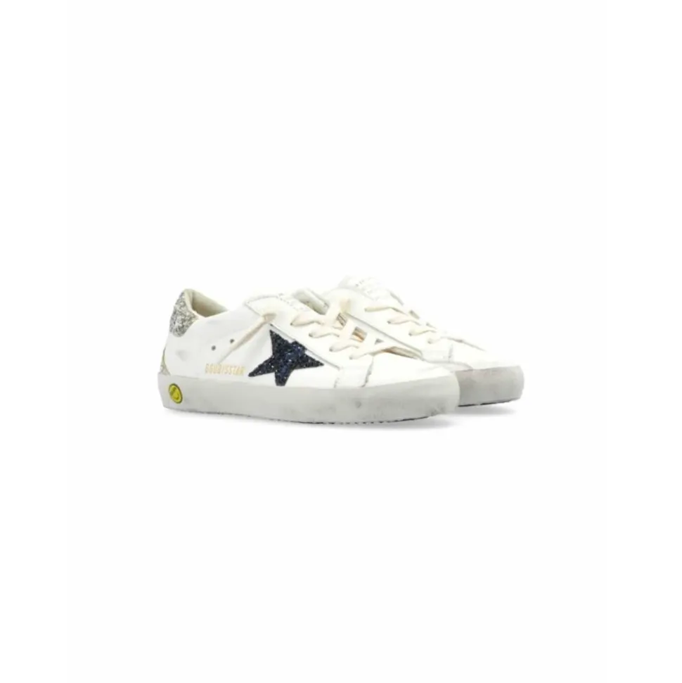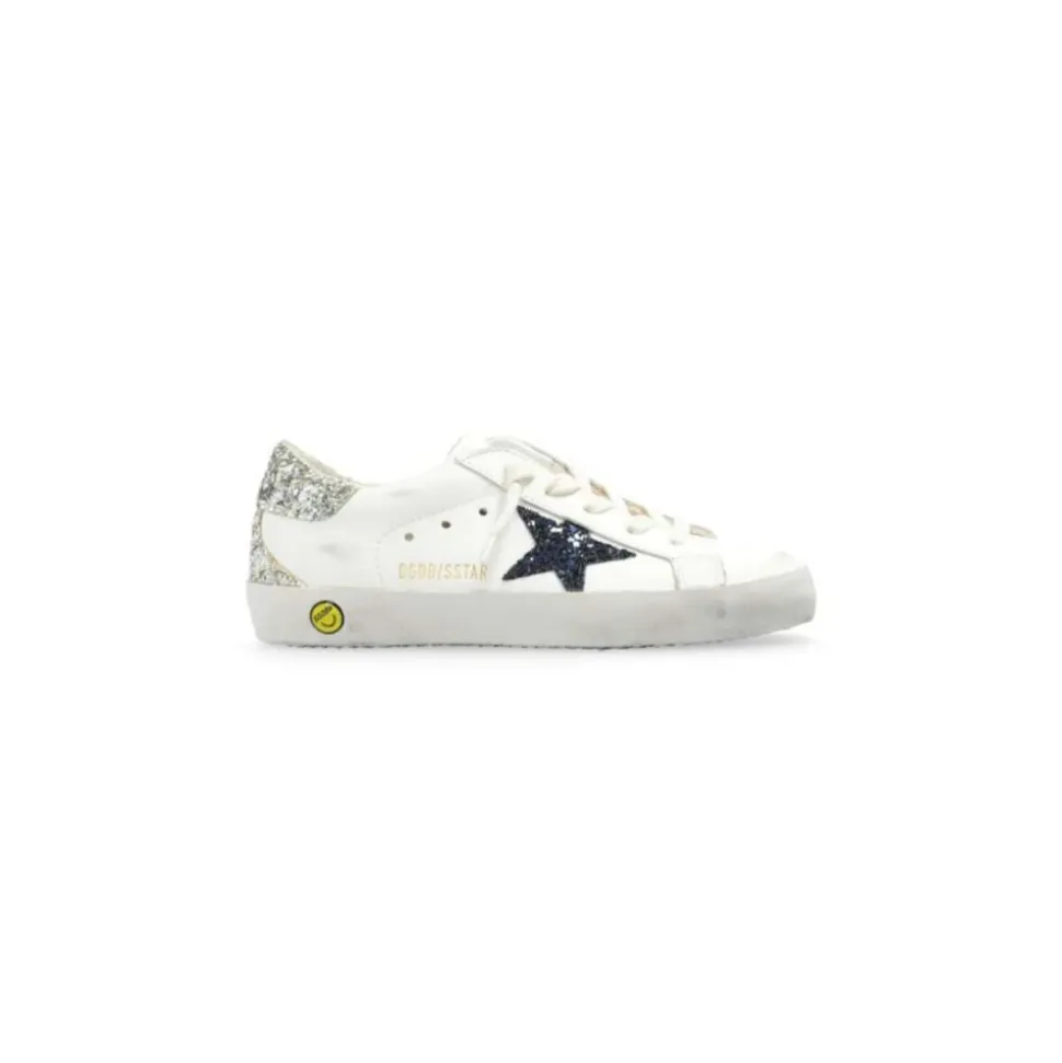 Golden Goose præsenterer disse hvide læder sneakers med stjerne til børn, designet med et karakteristisk stjernepatch og en kontrastfarvet hælkappe, perfekt til hverdagens eventyr. Produkt detaljer: Hvid | Læder | Snørelukning foran | Printet logo på siden | Karakteristisk stjernepatch | Kontrastfarvet hælkappe | Rund snude | Logo-printet pløs | Branded indersål | Gummisål | Kunder har rapporteret, at dette mærke har en tendens til at være stort i størrelsen. Vi anbefaler, at du vælger en størrelse mindre end normalt.