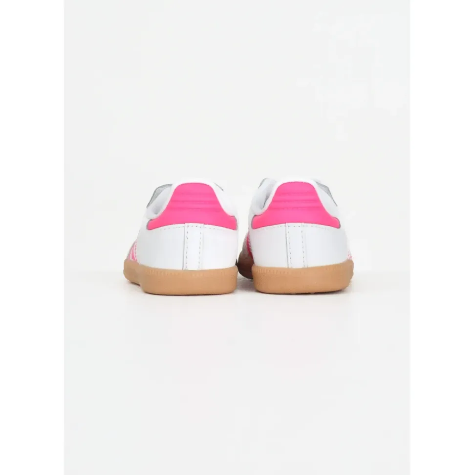 ADIDAS ORIGINALS Sneakers Samba OG hvide til spædbørn. adidas Samba er en ikonisk repræsentation af 3-Stripes-stilen. Fra 50’erne har den skiftet fra fodboldbaner til skateparker og samlet fans. Disse børnesko bringer æren tilbage til den originale Samba. Det glatte læderoverdel, ruskindtå og takkede 3 striber er alle til stede, sammen med elastiske snørebånd til nem på- og afklædning. Den bløde foring og fleksible gummisål er designet til voksende fødder. Efterår vinter sæson. Hvide spædbarnssneakers lav profil efterår vinter JQ3188.