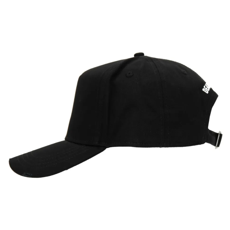 Opgrader din streetwear-kollektion med denne Dsquared2 ikoniske baseballkasket. Den er fremstillet af førsteklasses bomuld og har tydelig branding og `ICON`-detaljer, der giver et markant udtryk. Produkt detaljer: Sort | 100% bomuld | Spænde bagpå | Kontrastfarvet skrift | Brugte/revne skyggedetaljer | Dimensioner og pasform: One size fits all | Sammensætning og pleje: 100% bomuld | Pletrensning anbefales.