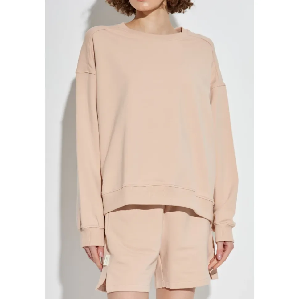 Rethinkit Studios Ilona Sweatshirt kombinerer minimalistisk stil med blød, struktureret komfort. Den let oversized crewneck og bomuldsblanding gør den til et alsidigt lag til hverdagsbrug. Vigtige egenskaber: Pink | Bomuldsblanding | Blød fornemmelse | Bevarer formen | Ribstrikkede manchetter og søm | Let oversized crewneck | Dropped shoulder linje | Ensfarvet, uden pynt | Diskret vævet etiket ved sømmen | Mål & pasform: Modelhøjde: 177 cm | Bryst: 83 cm | Talje: 61 cm | Hofter: 89 cm | Modellen er iført størrelse: S | Let oversized pasform | Dropped shoulder for bevægelsesfrihed | Sammensætning & pleje: Bomuld | Syntetisk blanding