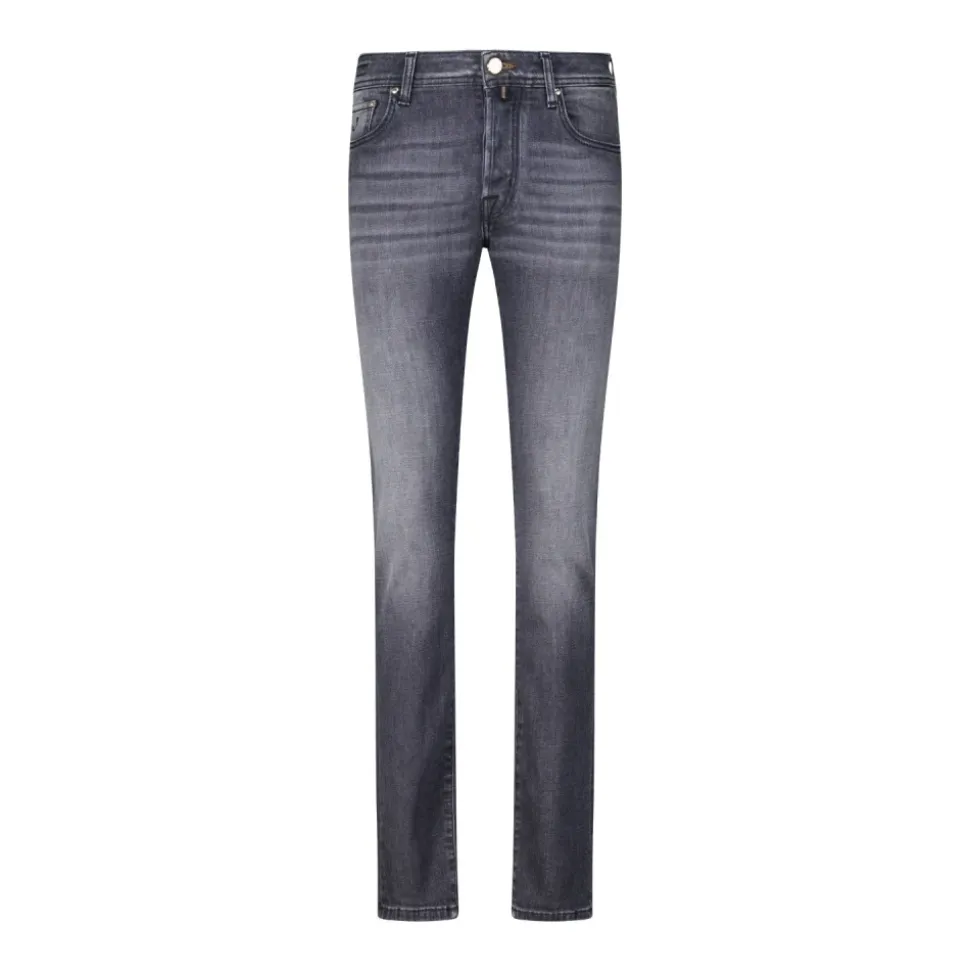 Forkæl din stil med disse Jacob Cohën slim-fit jeans, der kombinerer italiensk håndværk med en moderne pasform og rene linjer. Fremstillet i Italien, har de en klassisk knaplukning og høj kvalitet denim for optimal komfort. Som en stilfuld bonus leveres jeansene med matchende tråd og en sofistikeret lommetørklæde.