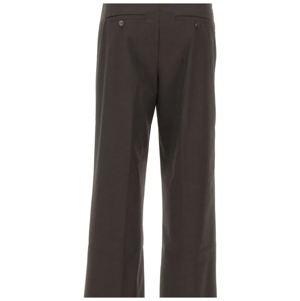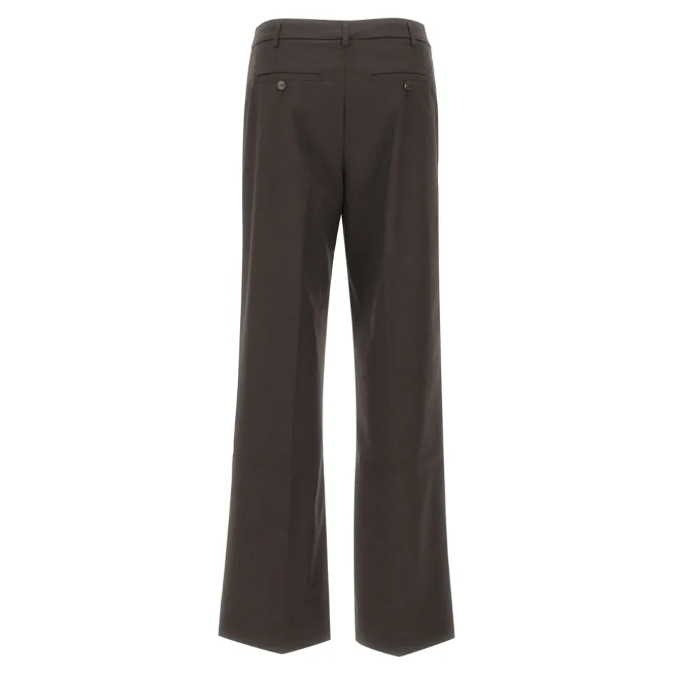 Birgitte Herskind Jack Trousers fortolker klassisk herrekonfektion med moderne lethed. De har en lav talje og skræddersyede pressefolder, der tilføjer struktur til en afslappet, bredbenet silhuet. Vigtigste egenskaber: Brun | Skrå lommer | Skrædderi-inspirerede detaljer | Sartoriale læg/pressefolder foran og bagpå | Falske paspolerede lommer med knapper bagpå | Mål og pasform: Lav talje | Bred pasform | Struktureret silhuet med pressefolder foran og bagpå