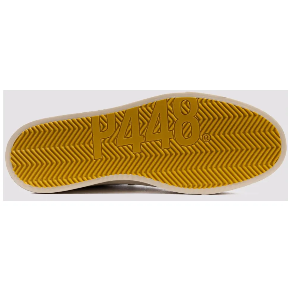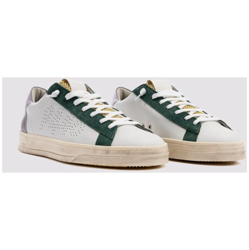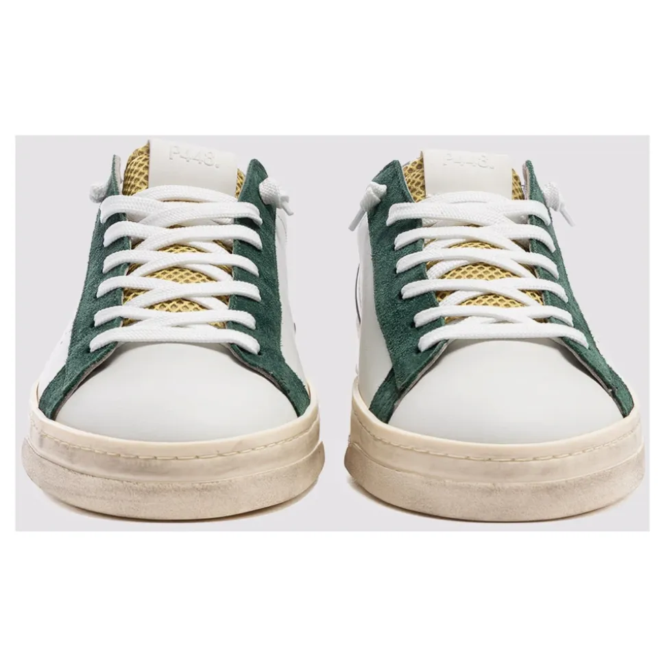 P448 Jack White Forrest sneakers kombinerer en klassisk, lav silhuet med flerfarvede detaljer til hverdagsbrug. Designet skiller sig ud med sin gule mesh-pløs, mørkegrøn ruskindskant og hånd-distressed gummisål. Vigtigste egenskaber: Flerfarvet | Grøn | Læder | Memory foam indersål | Hånd-distressed gummisål | Ekstra par snørebånd inkluderet | Frottéfor | Gul mesh-pløs | Mørkegrøn ruskindskant | Grå tekstureret læderhælstrop | Perforeret P448 logo | Orange slidbane | Dimensioner og pasform: Normal i størrelsen | Sammensætning og pleje: Læderoverdel | Mesh-pløs | Ruskindskant | Teksturerede læderdetaljer | Frottéfor | Memory foam indersål | Gummisål | Polyester snørebånd | Tørres af med en fugtig klud. Må ikke tørres i direkte sollys eller høj varme. Behandl læder med en beskyttende spray før brug og pleje det periodisk. Lad skoene tørre helt, før de tages i brug.