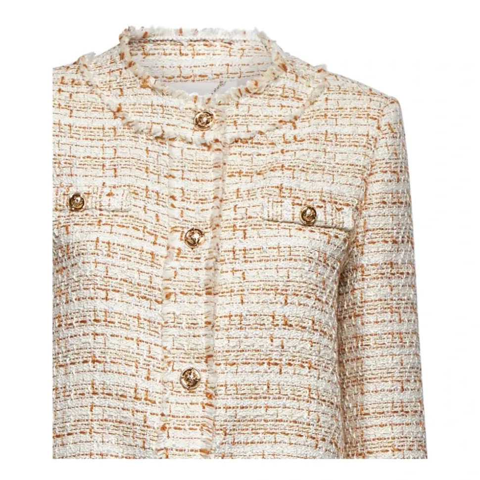 Silvian Heach Jacket Kimbara er en klassisk tweed blazer opdateret med dekorative guldknapper og en boxy, lige silhuet. Den fungerer som et elegant lag til formelle og smarte hverdagslooks. Vigtigste egenskaber: Beige | Fantasia | Polyester | Knaplukning | Rund halsudskæring | Boxy silhuet | Lige snit | Dekorative guldknapper | Tweed tekstur | Dimensioner & pasform: Boxy pasform | Lige silhuet | Sammensætning & pleje: 2% Viskose, 98% Polyester | Maskinvask koldt 30°C skånsom cyklus. Må ikke tørretumbles. Stryges ved lav temperatur (max 110°C). Må ikke bleges. Må ikke renses.