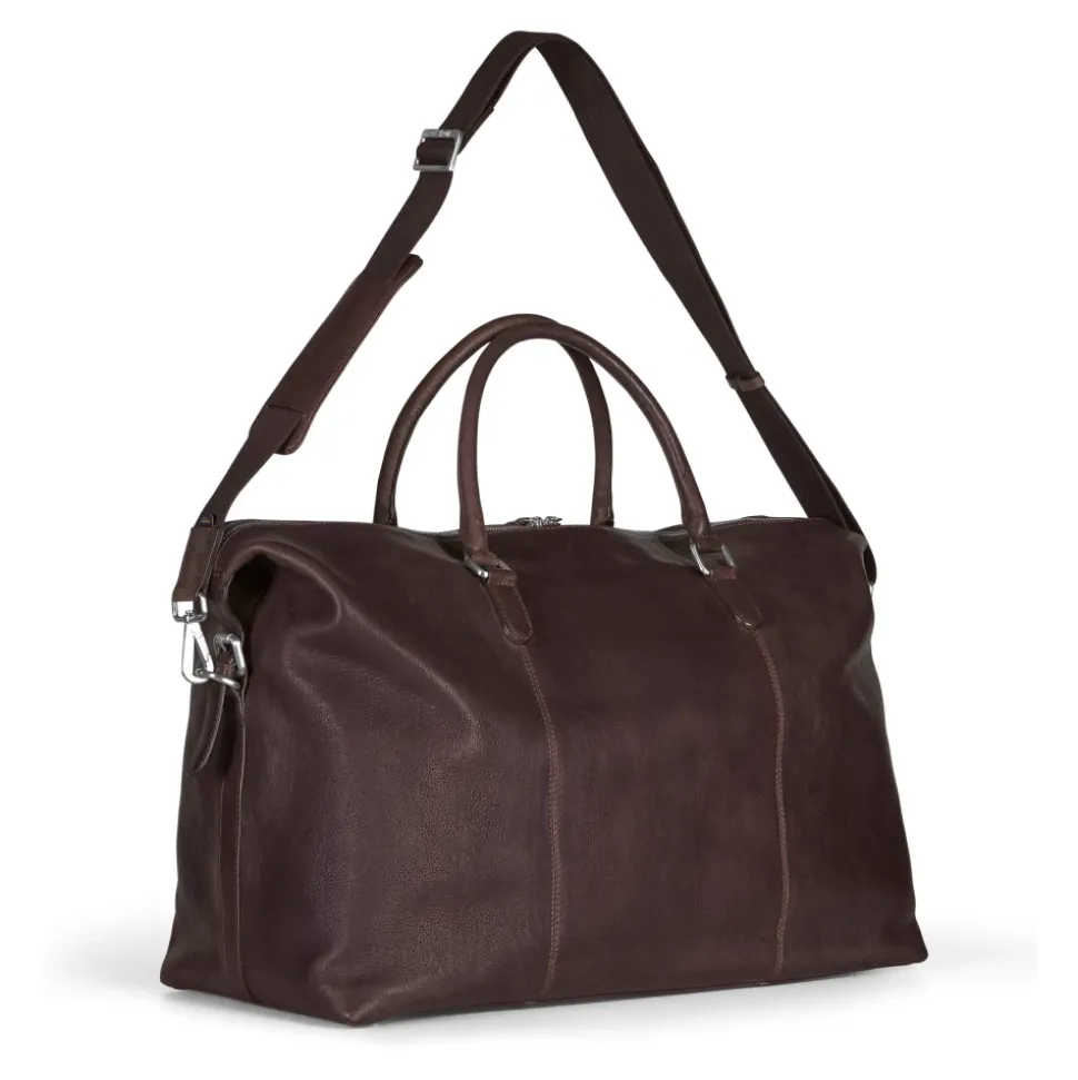 Howard London Jacob Weekend Bag er en rummelig rejseledsager i okselæder, der er bygget til korte ture og hverdagsbrug. Den kombinerer et stort lynlåslukket hovedrum med en justerbar, aftagelig skulderrem for alsidig transport. Vigtige egenskaber: Brun | Mørkebrun | Okselæder | Stort lynlåslukket hovedrum | To indvendige stiklommer | En indvendig lynlåslomme | Justerbar, aftagelig skulderrem | Sølvfarvet hardware | Håndlavet konstruktion | Læderdetaljer | Mål og pasform: B53 x H35 x D26 cm | Sammensætning og pleje: Okselæder