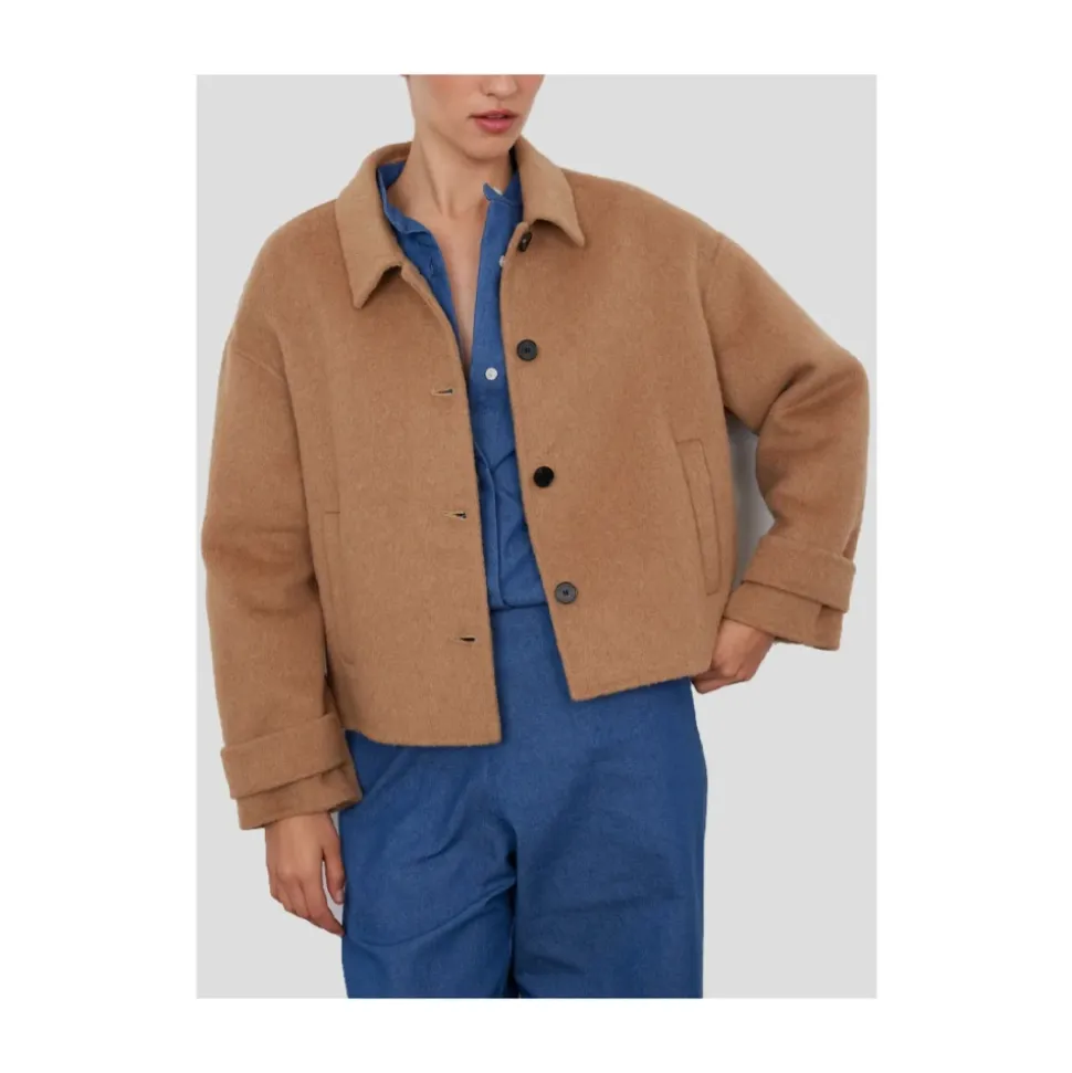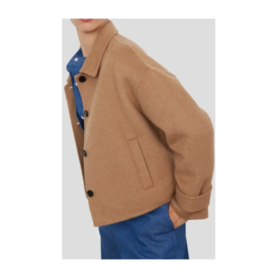 Bad Habits frakke med læderforet krave og knaplukning, designet til praktisk hverdagsbrug. Nøgleattributter: Beige | Uld, Polyester | Knaplukning | To udvendige lommer | Læderforet krave | Kraveudskæring | Kontrastkant | Sammensætning og pleje: 50% uld, 50% polyester | Kontrast: 50% polyuretan, 50% polyester | Foring: 100% polyester