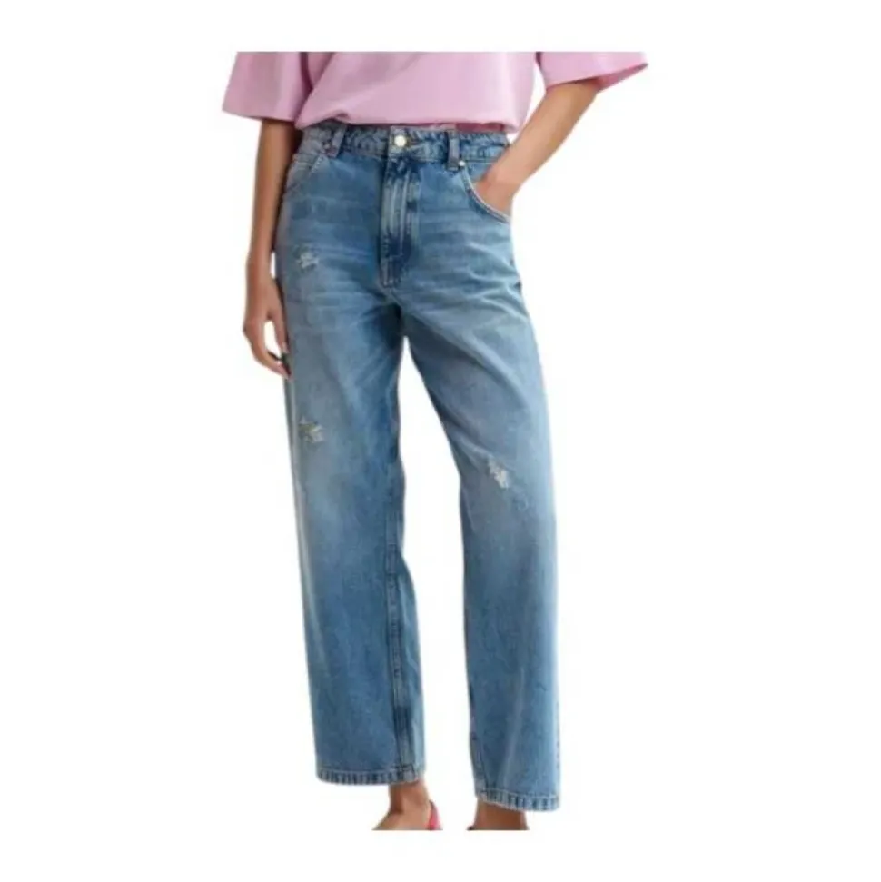 Essentiel Antwerp Jansen Jeans kombinerer en lige, vintage-vasket silhuet med kontrollerede sliddetaljer ved knæene og en kontrasterende baglomme med nitter for et markant afslappet look. Nøgleattributter: Blå | Navy | Bomuld | Mellemvægt denim | Påsyede baglommer | Belagt baglomme med nitter | Lynlås- og knaplukning | Bæltestropper | Vintage-vasket finish | Slidte knæ | Flosset kant | Kontrasterende baglomme med nitter | Guldfarvet hardware | Logo-mærke | Dimensioner & pasform: STØRRELSE 27 — Indvendig benlængde: 70,5 cm; Talje: 76 cm | STØRRELSE 27 — Indvendig benlængde: 70,5 cm; Talje: 76 cm | Straight fit | Medium talje | Cropped længde | Afslappet boyfriend-inspireret silhuet | Behagelige og nemme at have på | Sammensætning & pleje: 100% bomuld | Maskinvaskbar.