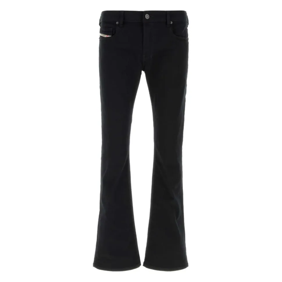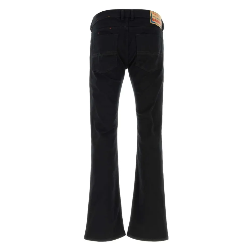 Diesel flared jeans i sort stretch denim tilbyder en flared silhuet med ekstra stretch for komfort og bevægelsesfrihed. Nøgleattributter: Sort | Denim | Stretchstof | Flared ben | Dimensioner og pasform: Flared fit